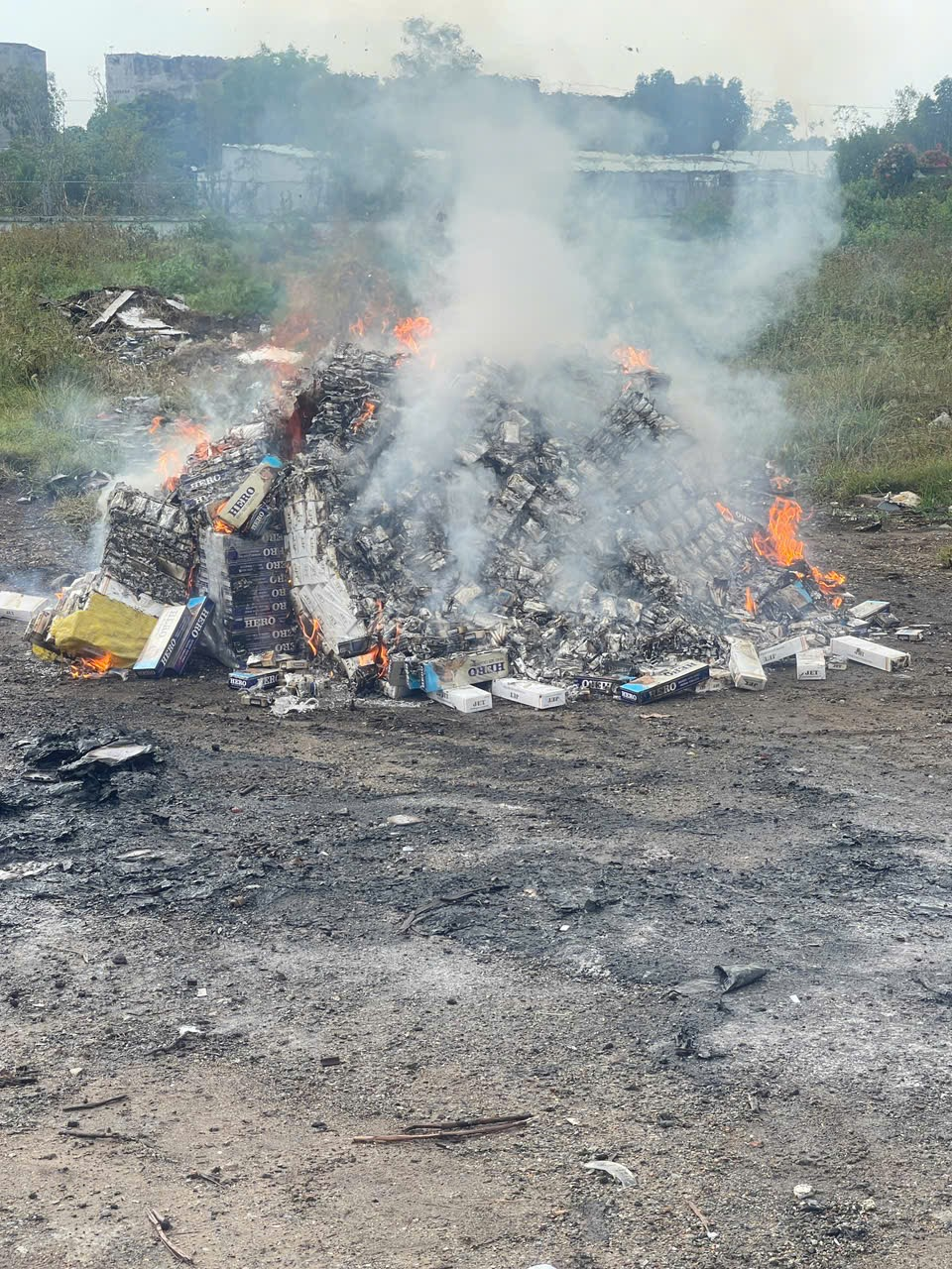 Hội đồng tiêu hủy đã tiến hành tiêu hủy các vật chứng trên bằng cách: Dùng lửa đốt, dùng búa đập và các hình thức khác làm vật chứng làm biến dạng không còn giá trị sử dụng.