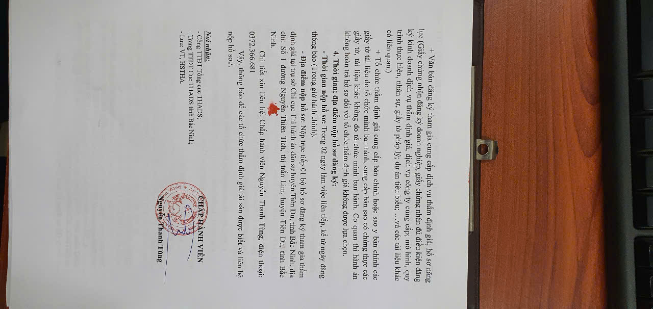 CC THADS thành phố Từ Sơn Thông báo lựa chọn tổ chức thẩm định giá tài sản số 1851/TB-CCTHADS ngày09/12/2021