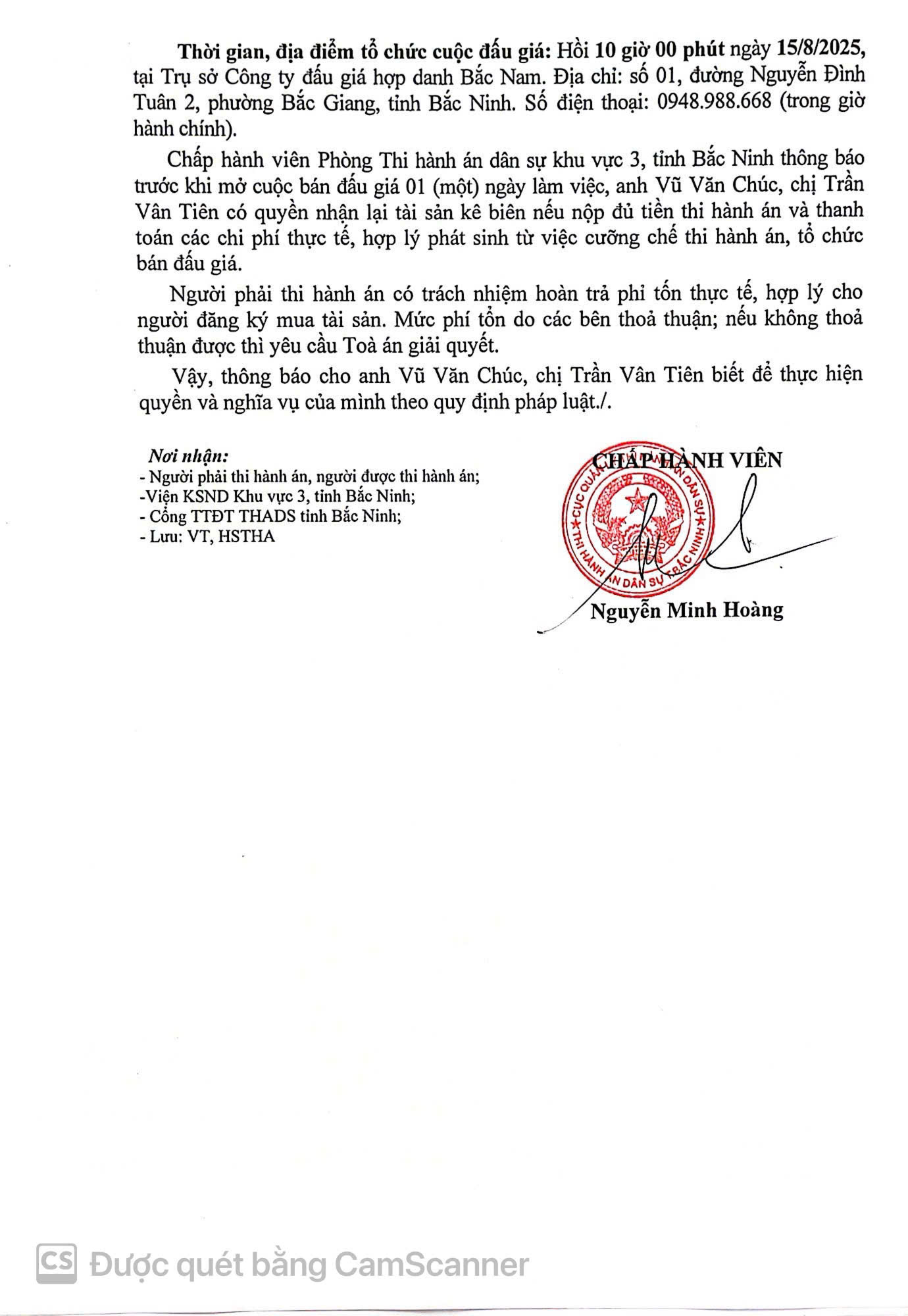 Phòng THADS khu vực 3 - Thông báo về tổ chức bán đấu giá số 68/TB-THADS ngày 28/7/2025