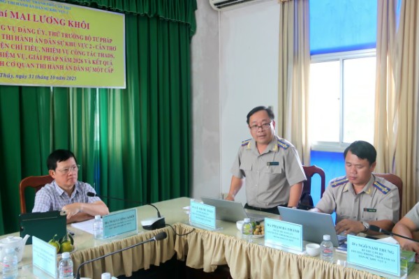 Báo cáo với Đoàn công tác, ông Ngô Nam Trung – Trưởng Phòng THADS Khu vực 2 – Cần Thơ cho biết, Phòng đã góp phần tích cực cho việc hoàn thành nhiệm vụ thi hành án ở địa phương. Hiệu quả, chất lượng công tác thi hành án dân sự từng bước được nâng lên. Nhiều vụ việc thi hành án tồn đọng từ những năm trước đã được thi hành xong.