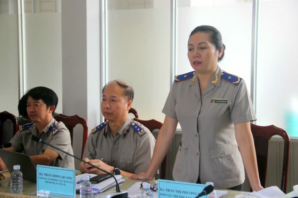 Bà Trần Thị Phương Hoa – Phó Cục trưởng Cục Quản lý THADS (Bộ Tư pháp) trao đổi