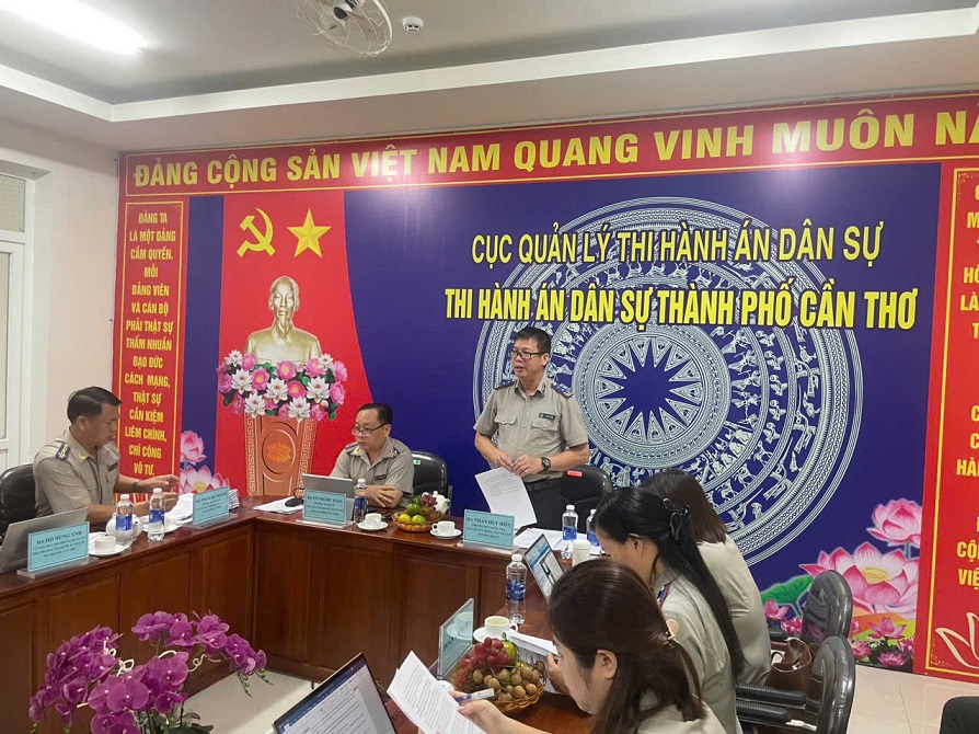 Tại buổi công bố, đồng chí Phan Huy Hiếu, Trưởng đoàn đã công bố Quyết định số 494/QĐ-CTHADS ngày 14/11/2025 và Kế hoạch số 2152/KH-CQLTHADS cùng ngày về việc kiểm tra chuyên đề công tác xác minh, phân loại và tổ chức thi hành án, án tín dụng ngân hàng, bán đấu giá tài sản tại THADS thành phố Cần Thơ; nhấn mạnh Cần Thơ là một trong những địa bàn trọng điểm, có số lượng việc và tiền phải thi hành án lớn, đây là đợt kiểm tra thường xuyên theo Kế hoạch hàng năm của Cục Quản lý THADS đối với các cơ quan THADS địa phương nhằm đánh giá ưu điểm, kết quả đạt được, những tồn tại, hạn chế, khuyết điểm, nguyên nhân trong tổ chức thực hiện các nhiệm vụ được giao trên các mặt công tác. Qua đó, kịp thời phát hiện, chấn chỉnh các vi phạm, thiếu sót trong quá trình tổ chức thi hành án; đồng thời hướng dẫn, tháo gỡ những khó khăn, vướng mắc phát sinh.