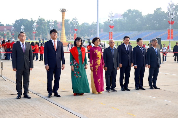 Vòng hoa của Đoàn viết dòng chữ: "Đời đời nhớ ơn Chủ tịch Hồ Chí Minh".