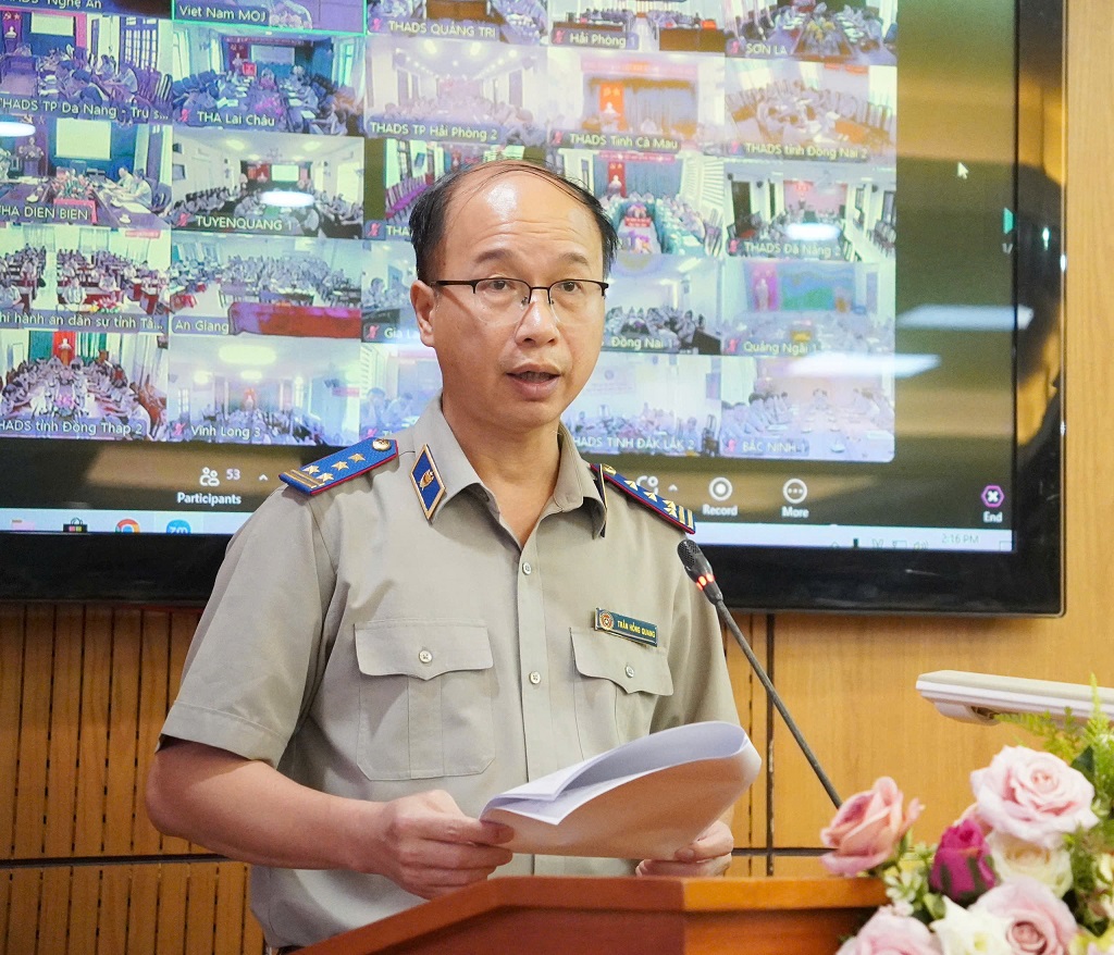 Phát biểu tại hội nghị, Quyền Trưởng ban Chuyển đổi số và Thống kê dữ liệu thi hành án Đỗ Ngọc Vĩnh cho biết, thời gian qua Ban đã phối hợp với các đơn vị liên quan triển khai và đưa vào sử dụng nhiều phần mềm hỗ trợ công tác THADS như: Phềm mềm Biên lai điện tử, Hỗ trợ ra quyết định Thi hành án giúp tiết kiệm thời gian thực hiện, tổng hợp báo cáo, giảm sai sót, nâng cao tính chính xác, phục vụ công tác chỉ đạo, điều hành kịp thời theo thời gian thực.