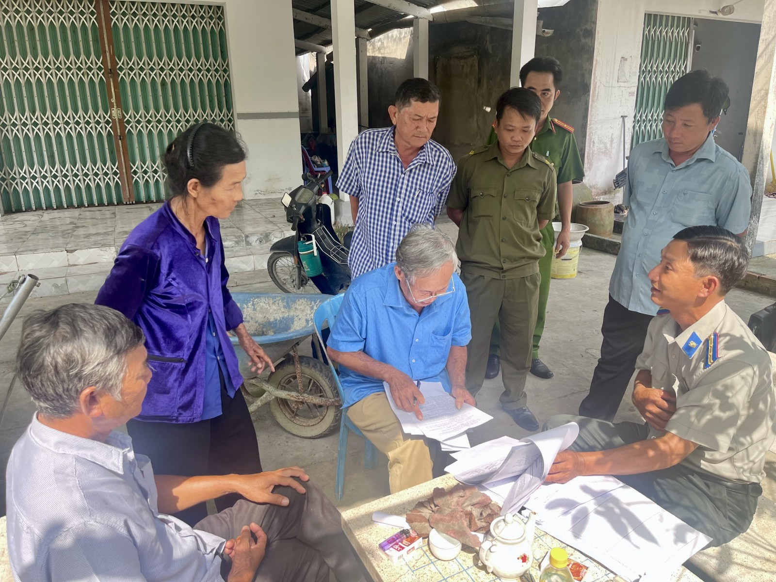 có “uy tín” (áo xanh) trong khu vực giải thích cho đương sự.