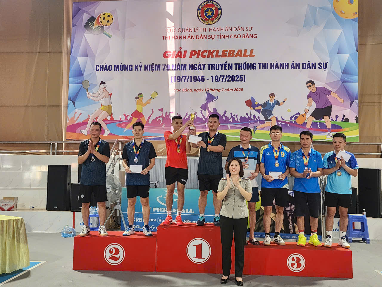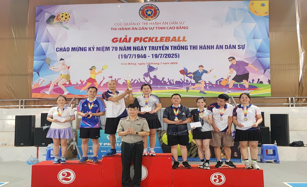 Thực hiện Kế hoạch số 1015/KH-CTHADS ngày 06/6/2025 của Cục Thi hành án dân sự tỉnh Cao Bằng về tổ chức các hoạt động kỷ niệm 79 năm Ngày truyền thống Thi hành án dân sự (19/7/1946-19/7/2025), 80 năm ngày truyền thống Ngành Tư pháp (28/8/1945-28/8/2025) và 80 năm ngày Quốc khánh nước Cộng hòa XHCN Việt Nam (02/9/1945-02/9/2025); nhằm thiết thực hưởng ứng phong trào “Toàn dân tập luyện thể dục thể thao theo gương Bác Hồ vĩ đại”; ngày 17/7/2025, Thi hành án dân sự tỉnh Cao Bằng đã tổ chức giải Pickleball; Tham dự giải có gần 50 vận động viên đến từ các phòng Chuyên môn và các khu vực Thi hành án dân sự, thi đấu với 2 nội dung: đôi nam và đôi nữ. Cơ cấu giải thưởng gồm giải Nhất, giải Nhì và đồng giải Ba của mỗi nội dung.