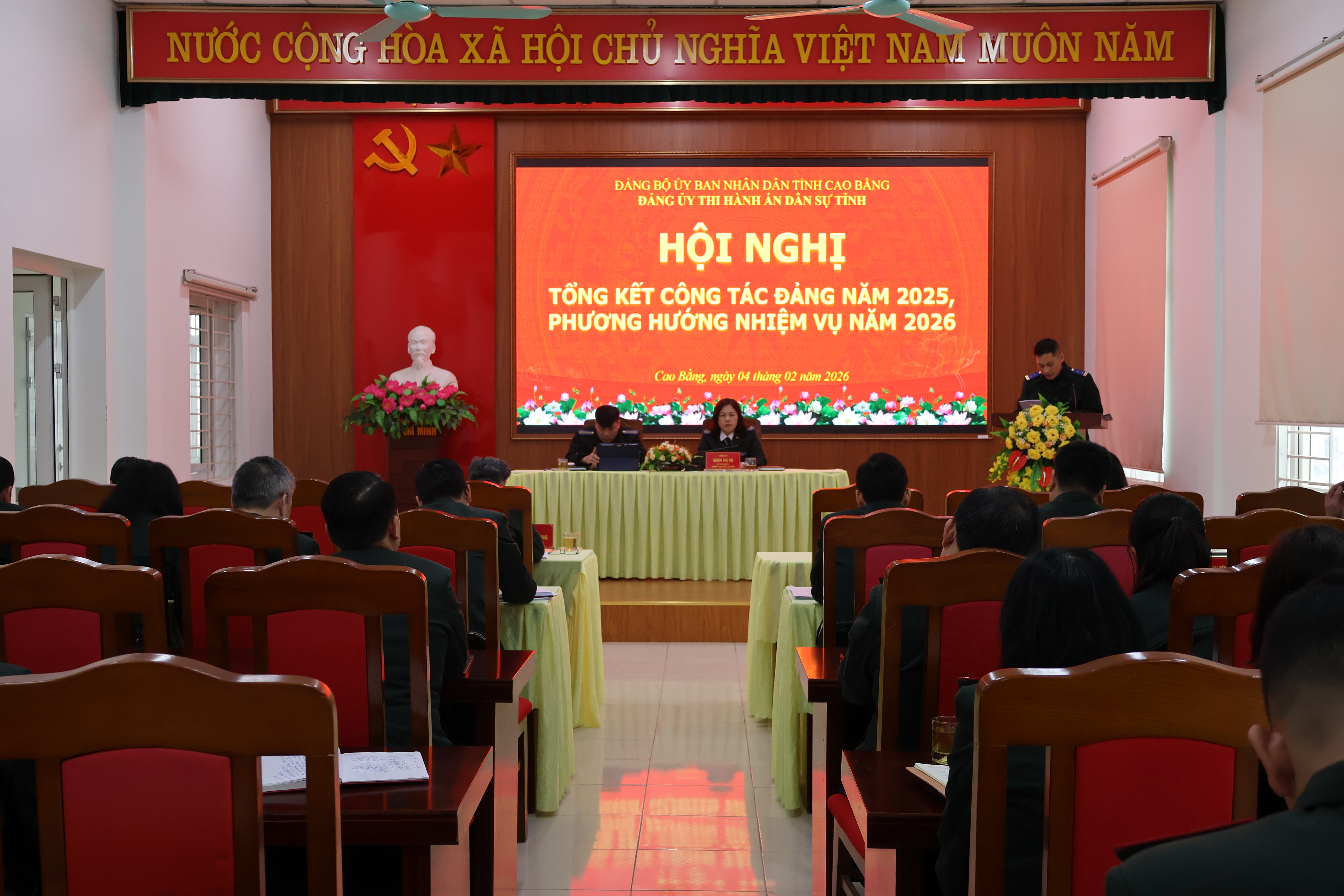 Chiều ngày 04/02/2025, Đảng bộ Thi hành án dân sự (THADS) tỉnh Cao Bằng tổ chức Hội nghị tổng kết công tác Đảng năm 2025, triển khai phương hướng, nhiệm vụ năm 2026. Hội nghị do đồng chí Đoàn Thị Hạ - Bí thư Đảng ủy THADS tỉnh Cao Bằng chủ trì.