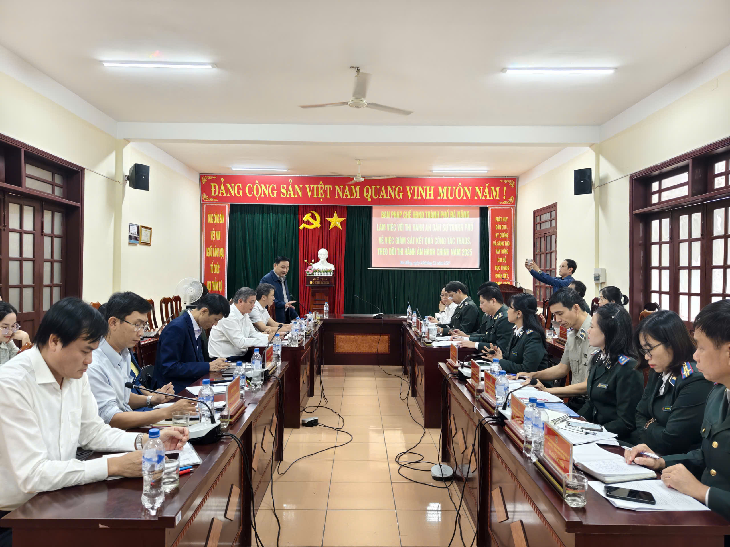 Thay mặt lãnh đạo THADS thành phố, đồng chí Vũ Tiến Dũng, Phó trưởng THADS thành phố đã báo cáo với Đoàn về kết quả công tác thi hành án dân sự, theo dõi THAHC năm 2025, nhiệm vụ trọng tâm công tác năm 2026. Năm 2025, trong bối cảnh thực hiện chủ trương sắp xếp, tinh gọn bộ máy hệ thống tổ chức Thi hành án dân sự cùng với sáp nhập tỉnh, nhằm bảo đảm hoạt động hiệu lực, hiệu năng và hiệu quả. THADS thành phố Đà Nẵng trên cơ sở hợp nhất Cục THADS thành phố Đà Nẵng và Cục THADS tỉnh Quảng Nam theo đó, tổng số việc phải thi hành án 30.317 việc tương ứng số tiền 30.042 tỷ 153 triệu 379 ngàn đồng, xếp thứ 11/34 tỉnh, thành phố về việc, 3/34 tỉnh, thành phố về tiền và tổng số biên chế là 236 (trong đó cán bộ chủ chốt là 50 đồng chí), đến nay, số công chức có mặt là 197, với số việc phải giải quyết là 33.581 việc, tương ứng số tiền 34.901 tỷ 429 triệu 820 nghìn đồng và là thành phố trực thuộc Trung ương có diện tích lớn nhất cả nước, đây là thách thức đối với công tác thi hành án do địa bàn rộng, lực lượng mỏng.