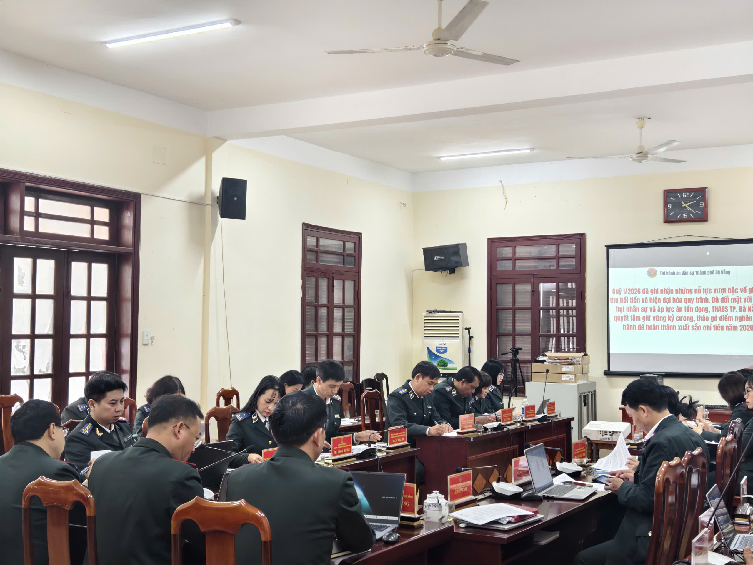 Năm 2026 là năm tăng tốc, bứt phá thực hiện thắng lợi các mục tiêu, nhiệm vụ kinh tế - xã hội năm 2026 và cả nhiệm kỳ Đại hội XIV; thực hiện quyết liệt, hiệu quả các nghị quyết kết luận của Ban Chấp hành Trung ương, Bộ Chính trị, Ban Bí thư, Chính phủ, Thủ tướng Chính phủ về sắp xếp chính quyền địa phương 02 cấp; về đột phá phát triển khoa học, công nghệ, đổi mới, sáng tạo và chuyển đổi số quốc gia; về hội nhập quốc tế trong tình hình mới; về đổi mới công tác xây dựng và thi hành pháp luật, trong bối cảnh đó, công tác THADS phải quyết liệt thực hiện chỉ tiêu, nhiệm vụ nhằm nâng cao hiệu năng, hiệu lực, hiệu quả. Trưởng THADS thành phố yêu cầu tập thể Lãnh đạo THADS TP kiên trì, kiên quyết trong công tác chỉ đạo, điều hành địa bàn phụ trách trên cơ sở các quy định, quy trình, quy chế đã được ban hành; kiên quyết xử lý kỷ luật công chức thực hiện không đúng quy định, quy trình, quy chế, nâng cao kỷ luật, kỷ cương hành chính, tạo chuyển biến cơ bản trong lề lối, tác phong, thái độ làm việc trong đơn vị, tiếp tục tập trung công việc, tiếp tục công hiến, phát huy tinh thần trách nhiệm cao nhất cùng tập thể đơn vị phấn đấu hoàn thành chỉ tiêu nhiệm vụ, tránh tình trạng làm việc cầm chừng, ảnh hưởng đến chỉ tiêu chung của toàn thành phố; Tăng cường quán triệt, phòng ngừa, phát hiện, ngăn chặn, xử lý nghiêm các hành vi tiêu cực, tham nhũng, gây nhũng nhiễu, phiền hà cho người dân và doanh nghiệp trong hoạt động công vụ; Chú trọng triển khai thực hiện Nền tảng số THADS và việc xử lý các văn bản đến, đi và phiếu trình giải quyết công việc hoàn toàn trên môi trường điện tử, không sử dụng văn bản giấy (trừ các văn bản, phiếu trình có nội dung thuộc bí mật nhà nước theo quy định).Về chỉ tiêu nhiệm vụ, cần đẩy nhanh kết quả thi hành án đảm bảo thực chất, trung thực, chính xác, đồng thời có giải pháp cụ thể, đột phá trong thực hiện chỉ tiêu về việc, trong đó đặc biệt lưu ý kiểm soát, đôn đốc án tín dụng ngân hàng, kinh doanh thương mại, án có điều kiện trên 01 năm chưa thi hành xong.