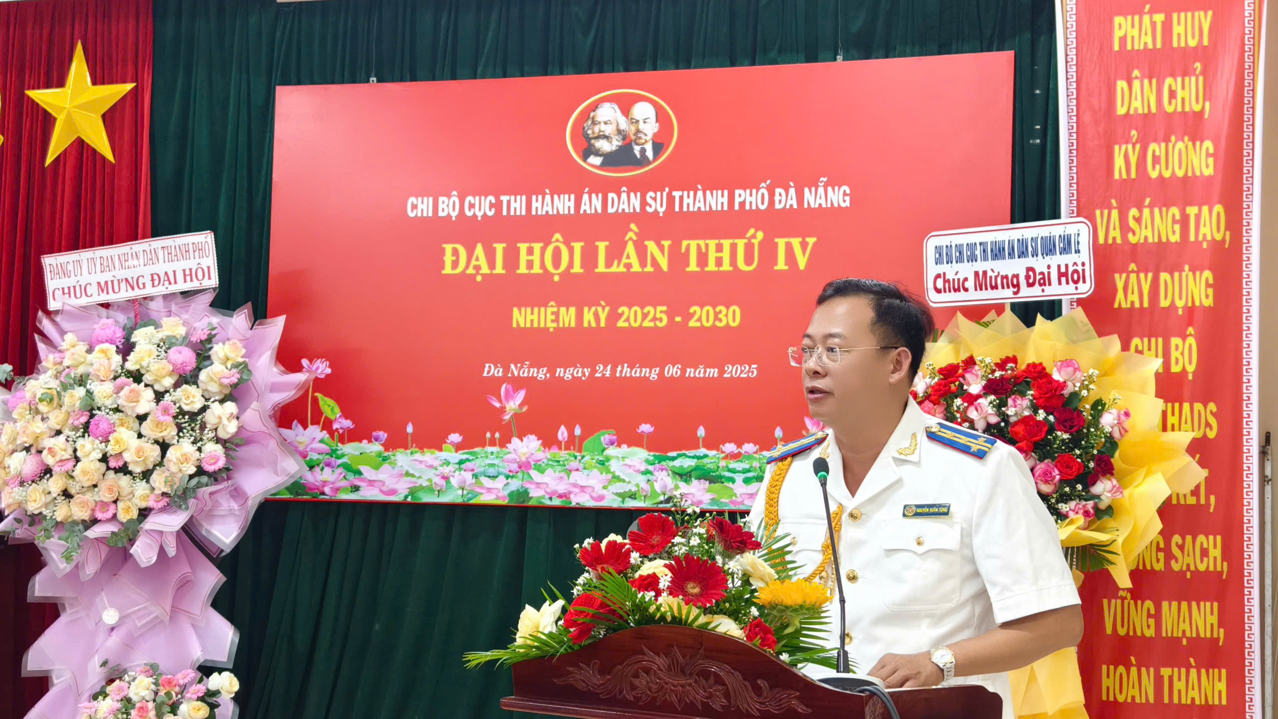 Phát biểu chỉ đạo Đại hội, đồng chí Nguyễn Đăng Huy, Phó Bí thư Đảng ủy UBND thành phố ghi nhận, đánh giá cao sự chuẩn bị công tác tổ chức Đại hội lần thứ IV của Chi bộ và nhấn mạnh Chi bộ đã gặp những khó khăn, thách thức về tình hình dịch bệnh Covid-19; khối lượng công việc chuyên môn, số việc thi hành án ngày càng tăng về số lượng, tính chất phức tạp của các vụ việc trong quá trình thực hiện nhiệm vụ chính trị; công tác tổ chức có biến động về nhân sự đứng đầu cấp ủy, cơ quan, đơn vị; vì vậy, ảnh hưởng nhất định trong công tác lãnh đạo, chỉ đạo và tổ chức thực hiện nhiệm vụ chính trị và công tác xây dựng Đảng tại Chi bộ. Tuy nhiên, dưới sự lãnh đạo của tập thể Chi ủy, lãnh đạo Cục, toàn Chi bộ đã nỗ lực, đoàn kết thực hiện đạt chỉ tiêu về công tác xây dựng Đảng, vượt chỉ tiêu nhiệm vụ chính trị về cả vụ việc và tiền trong năm 2024. Tập thể Chi ủy, Chi bộ đã thành thắn nhìn nhận, đánh giá những mặt còn tồn tại, hạn chế và bài học kinh nghiệm được thể hiện trong báo cáo chính trị của Chi bộ, báo cáo kiểm điểm của Chi ủy và các tham luận tại Đại hội.