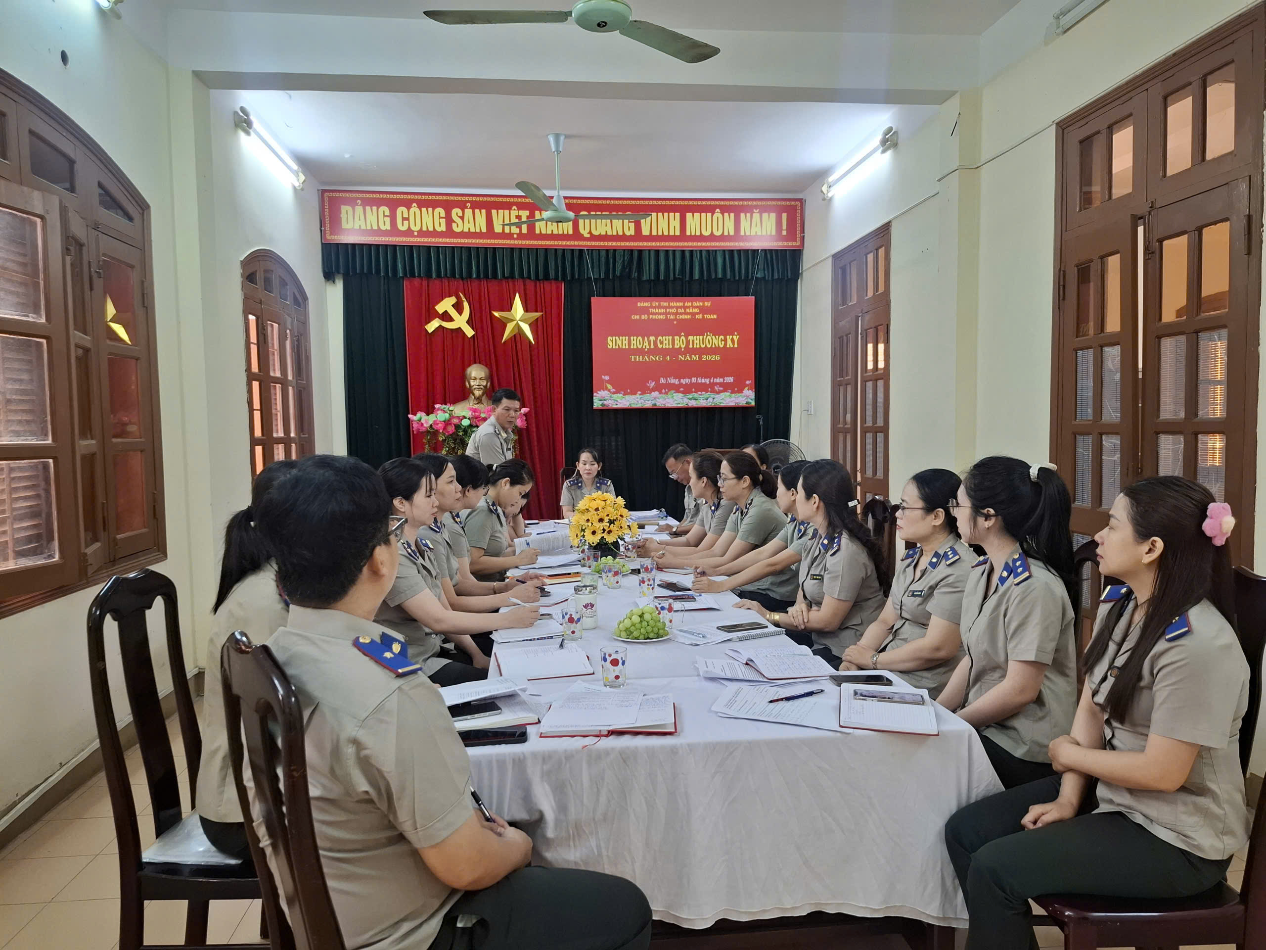 Tại buổi sinh hoạt, Chi bộ đã tập trung đánh giá tình hình, kết quả thực hiện công tác xây dựng Đảng và lãnh đạo thực hiện nhiệm vụ chính trị tháng 3 năm 2026; thẳng thắn chỉ ra những tồn tại, hạn chế, đặc biệt là những khó khăn, vướng mắc trong công tác quản lý kinh phí cưỡng chế, tạm ứng cưỡng và sai sót khi áp dụng phần mềm kế toán thi hành án dân sự trực tuyến (online); triển khai, quán triệt các nhiệm vụ trọng tâm tháng 4 năm 2026 tập trung thực hiện tốt nhiệm vụ chính trị được giao và các hoạt động hướng tới kỷ niệm 80 năm Ngày Truyền thống THADS.