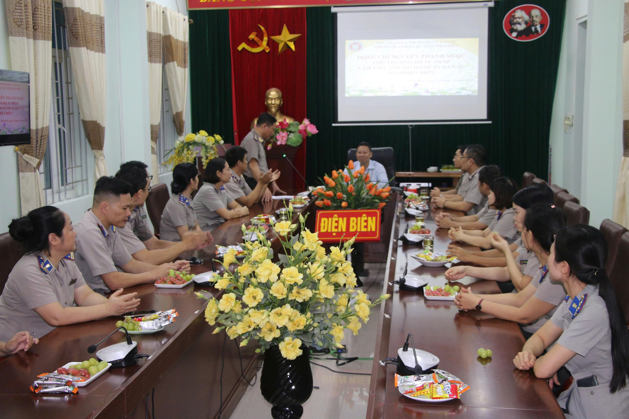 Sau đó, Đoàn công tác đã đến làm việc với Thi hành án dân sự tỉnh Điện Biên. Tại đây, đoàn đã nghe lãnh đạo THADS tỉnh báo cáo về tình hình công tác THADS trên địa bàn.