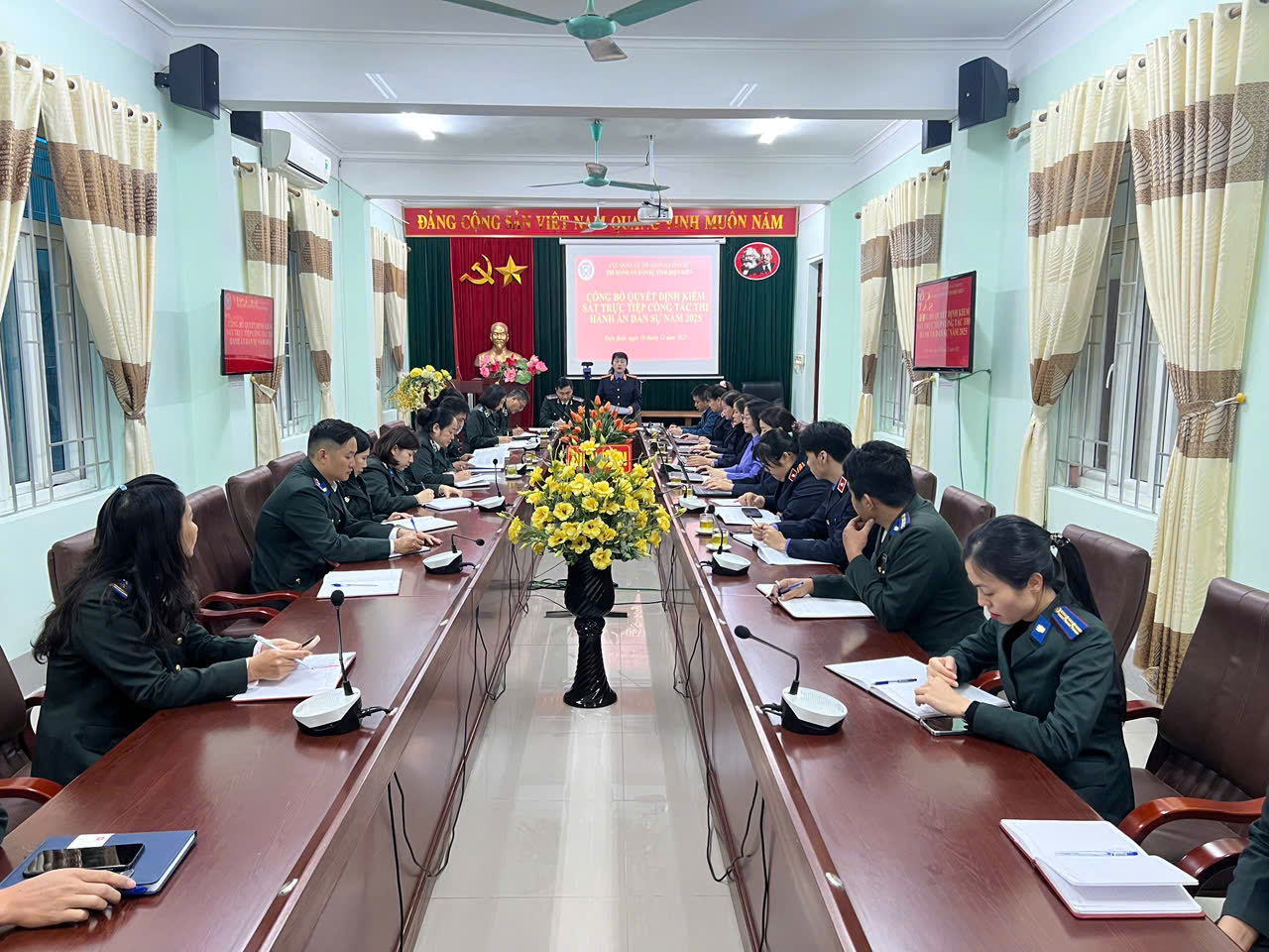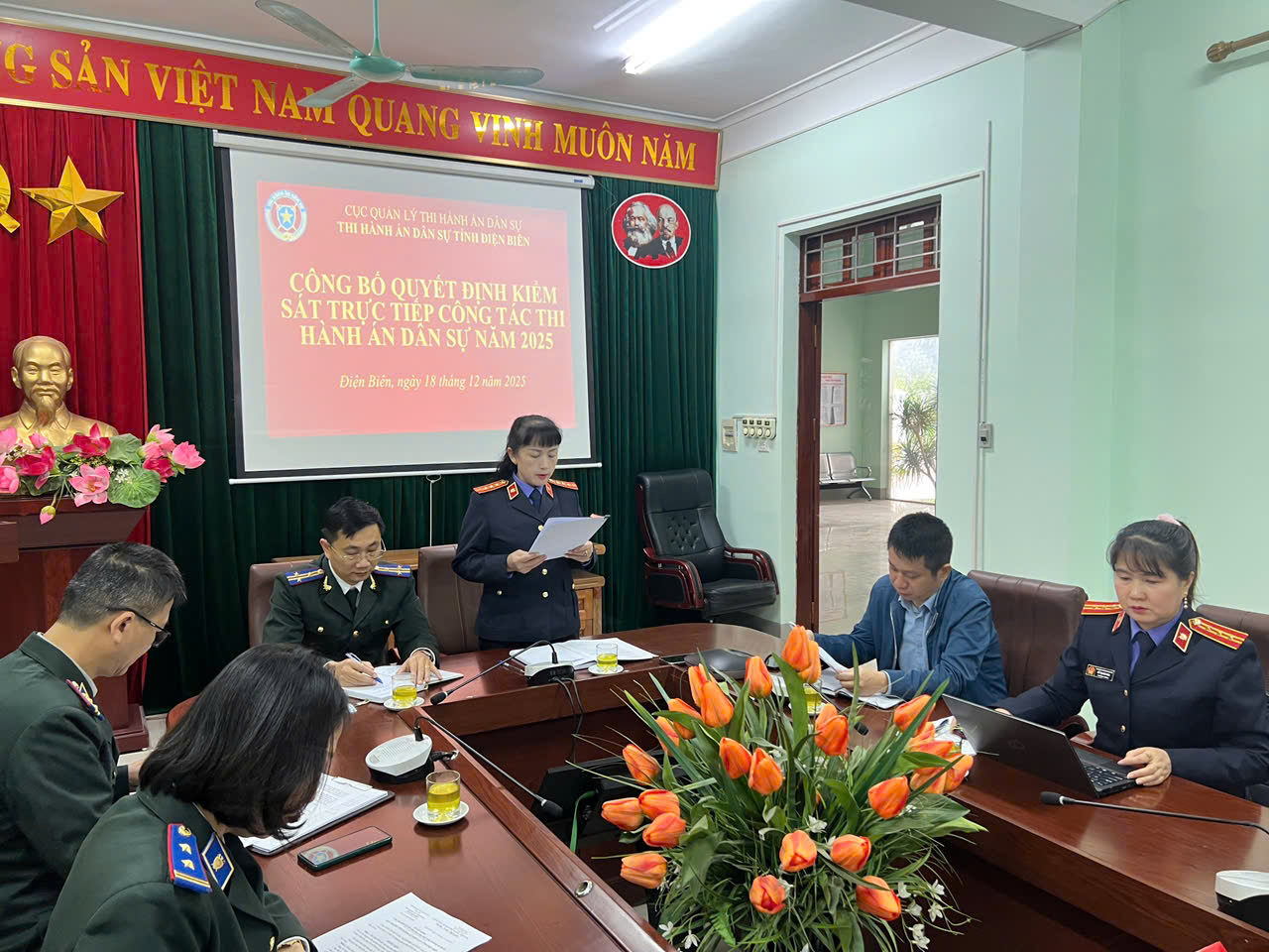 Thực hiện Quyết định số 1010/QĐ-VKS-P8 và Kế hoạch số 1011/KH-VKS ngày 02/12/2025 của Viện kiểm sát nhân dân tỉnh Điện Biên, sáng ngày 18/12/2025, Viện kiểm sát nhân dân tỉnh Điện Biên đã công bố Quyết định trực tiếp kiểm sát việc tuân theo pháp luật trong hoạt động thi hành án dân sự (THADS) tại phòng THADS tỉnh Điện Biên.