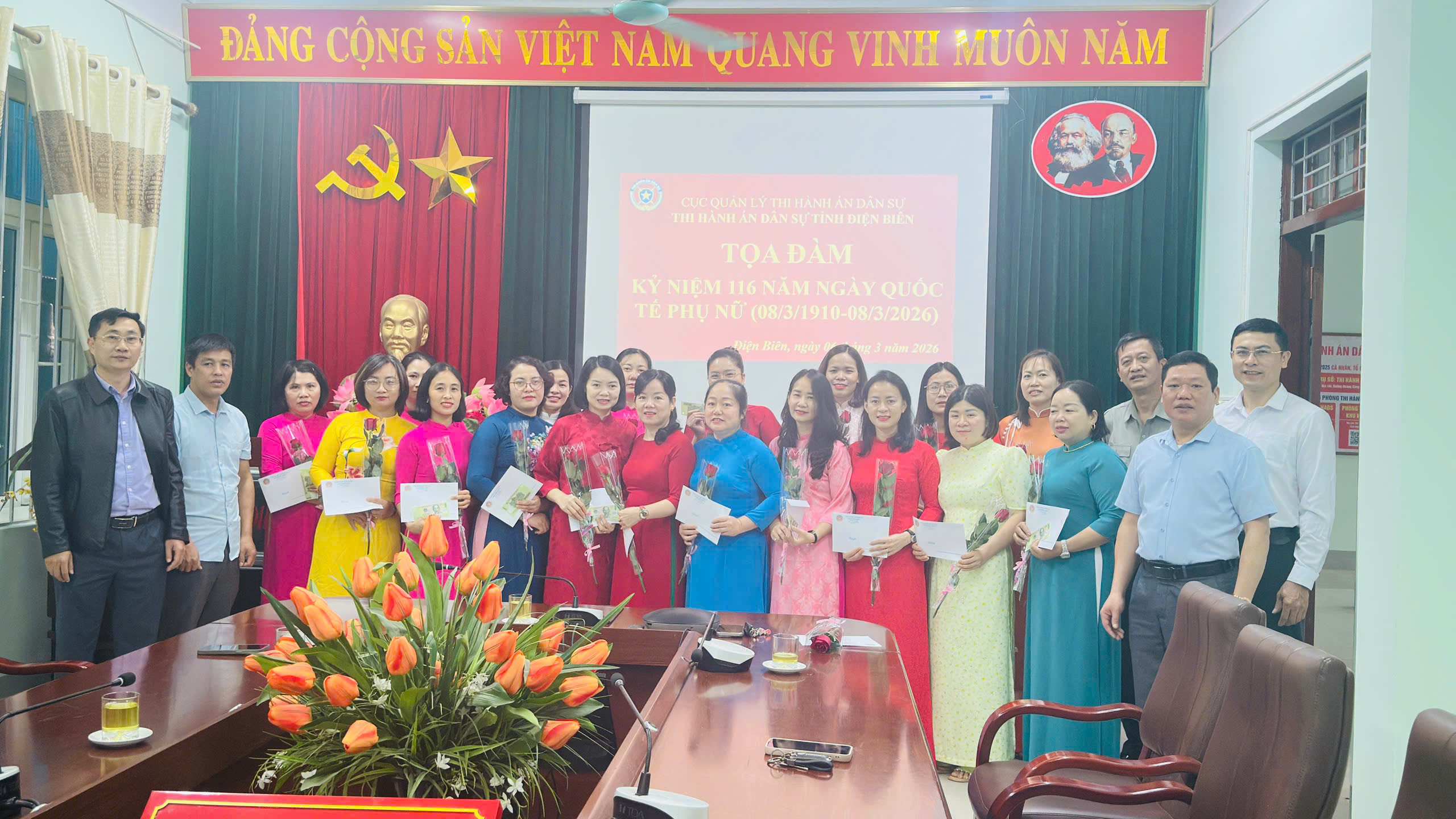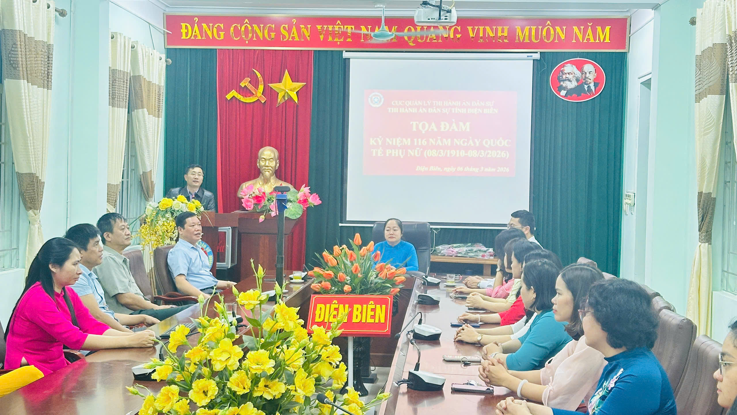 Tham dự buổi Tọa đàm có đồng chí Đoàn Trọng Ngôn, Phó Bí thư Đảng ủy, Trưởng Thi hành án dân sự (THADS) tỉnh; đồng chí Đoàn Văn Hải, Ủy viên Ban Thường vụ Đảng ủy, Phó trưởng THADS tỉnh; lãnh đạo các phòng chuyên môn thuộc THADS tỉnh cùng toàn thể chị em phụ nữ tại các phòng chuyên môn và Phòng THADS khu vực I, II.