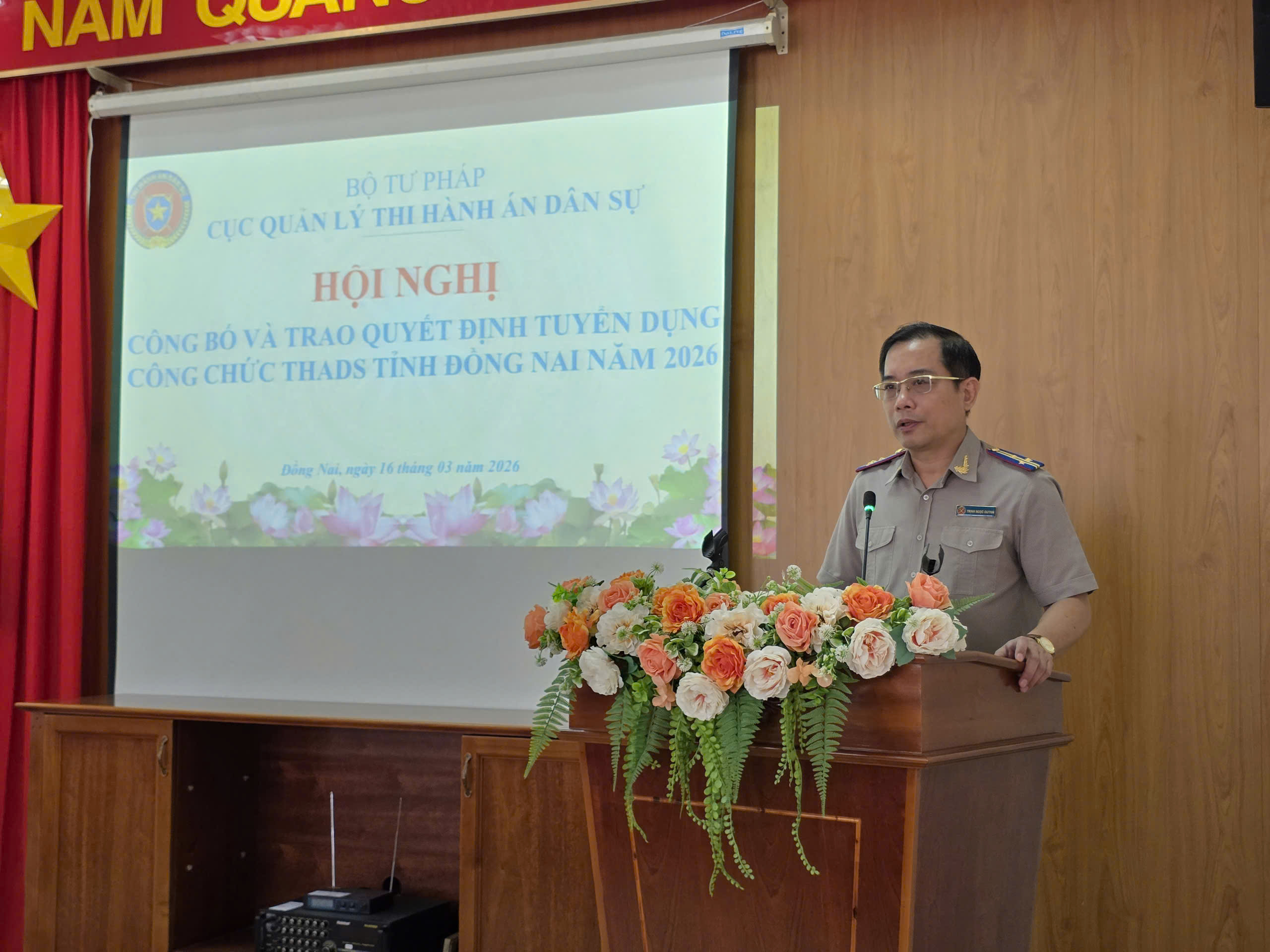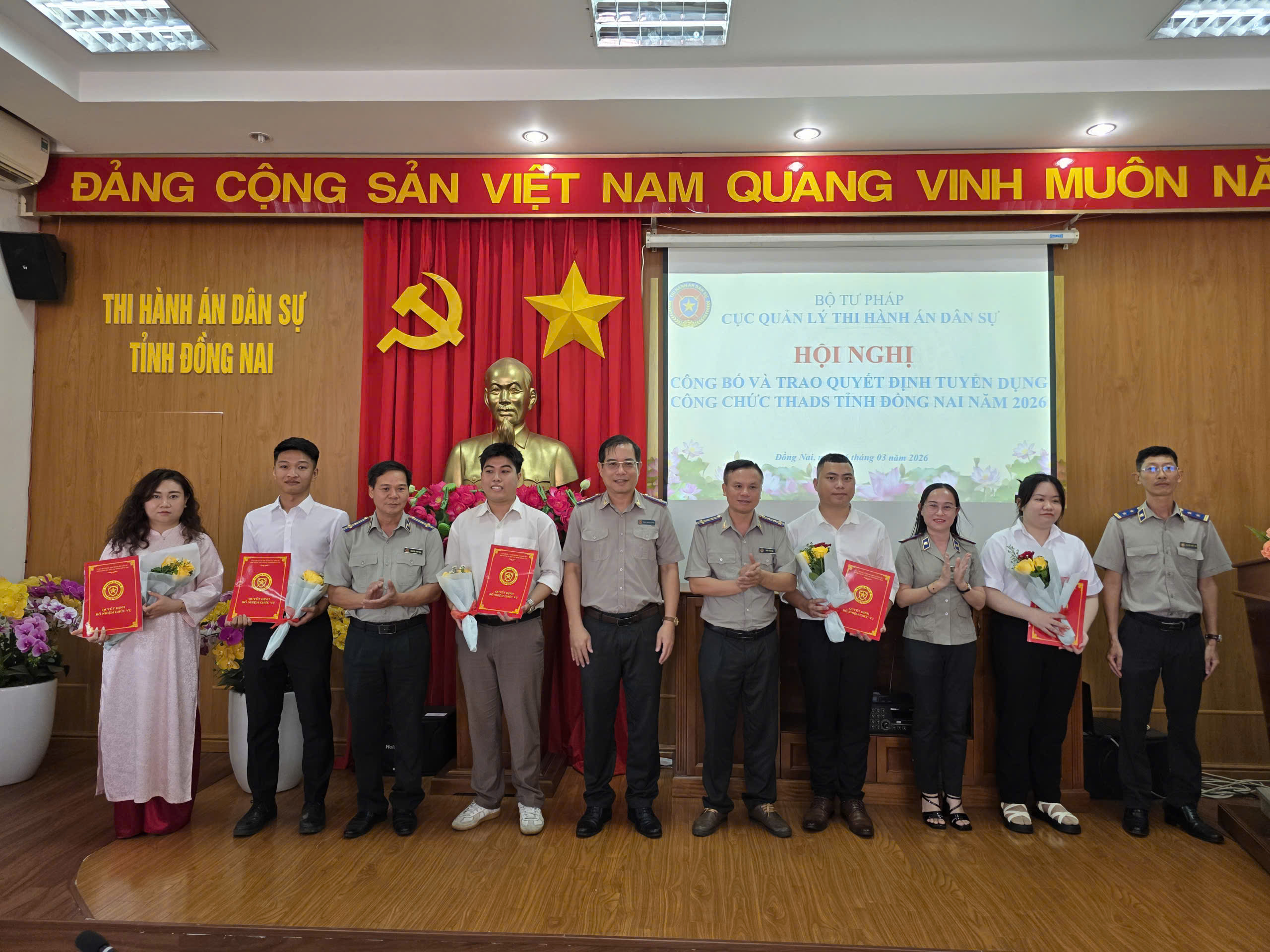 Sáng 15/3/2026, tại trụ sở Thi hành án dân sự tỉnh Đồng Nai, được sự ủy quyền của lãnh đạo Cục Quản lý Thi hành án dân sự, THADS tỉnh Đồng Nai đã long trọng tổ chức Lễ công bố, trao quyết định tuyển dụng công chức năm 2026.