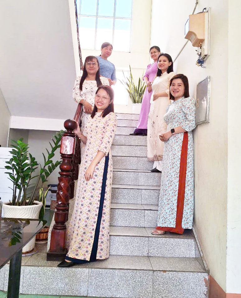 Đồng thời, Đồng chí Phạm Thị Mỹ Linh, Chủ tịch Công đoàn phát động hưởng ứng “ Tuần lễ áo dài” để tăng thêm giá trị tà áo dài của Việt Nam, Chị em đơn vị cũng góp mặt với những chiếc áo dài xinh xắn, thướt tha, tạo vẻ đẹp thơ mộng, hồn nhiên, tươi đẹp nhằm lan tỏa vẻ đẹp áo dài và phụ nữ Việt Nam, góp phần khơi dậy niềm tự hào và trách nhiệm gìn giữ, phát huy trang phục truyền thống dân tộc.