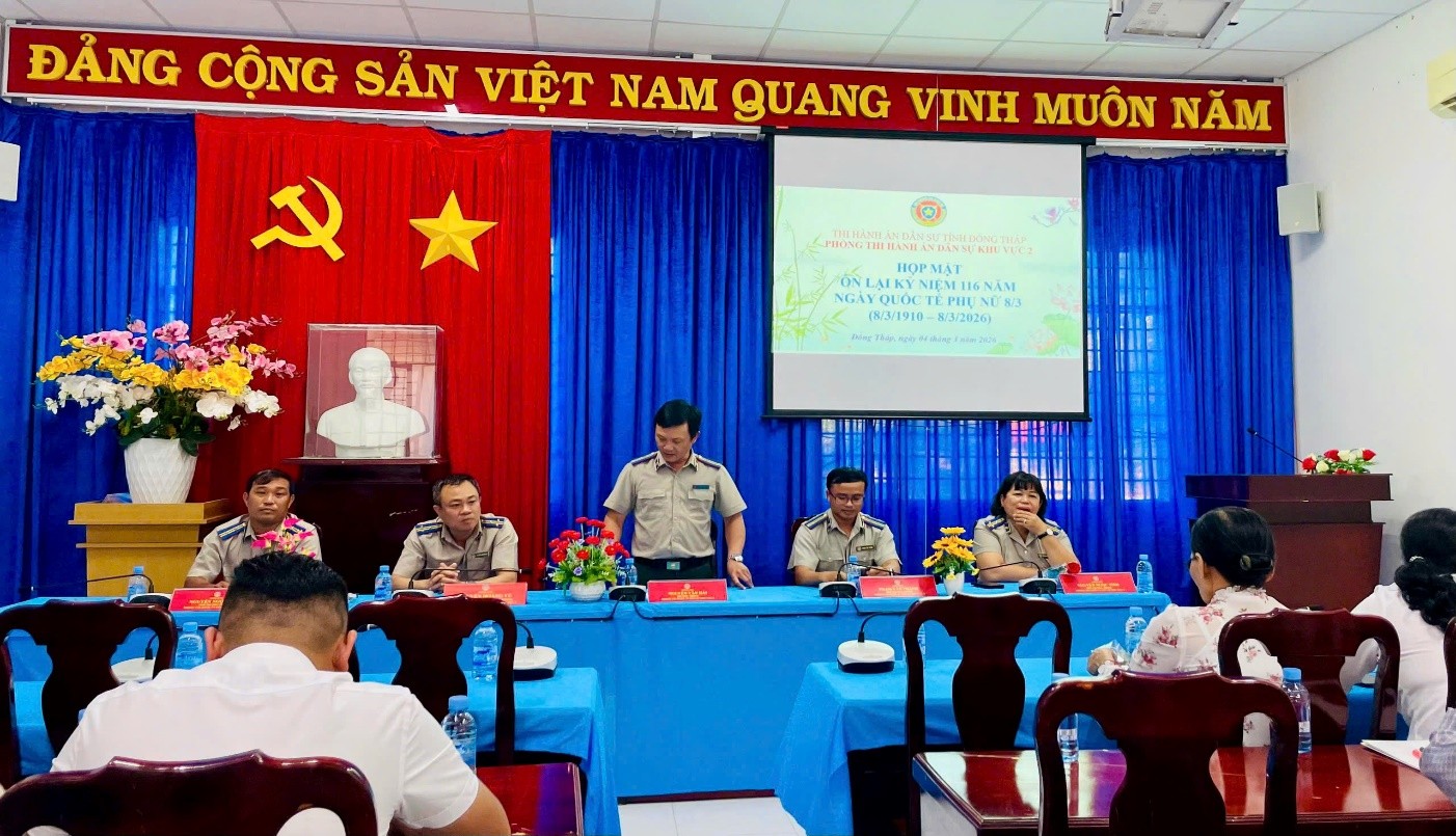 Ngày 04 tháng 3 năm 2026, Phòng Thi hành án dân sự khu vực 2 tổ chức Họp mặt kỷ niệm 116 năm Ngày Quốc tế phụ nữ 8/3 (8/3/1910 – 8/3/2026), hoạt động nhằm tri ân và tôn vinh nữ cán bộ, công chức, người lao động đang công tác tại đơn vị.