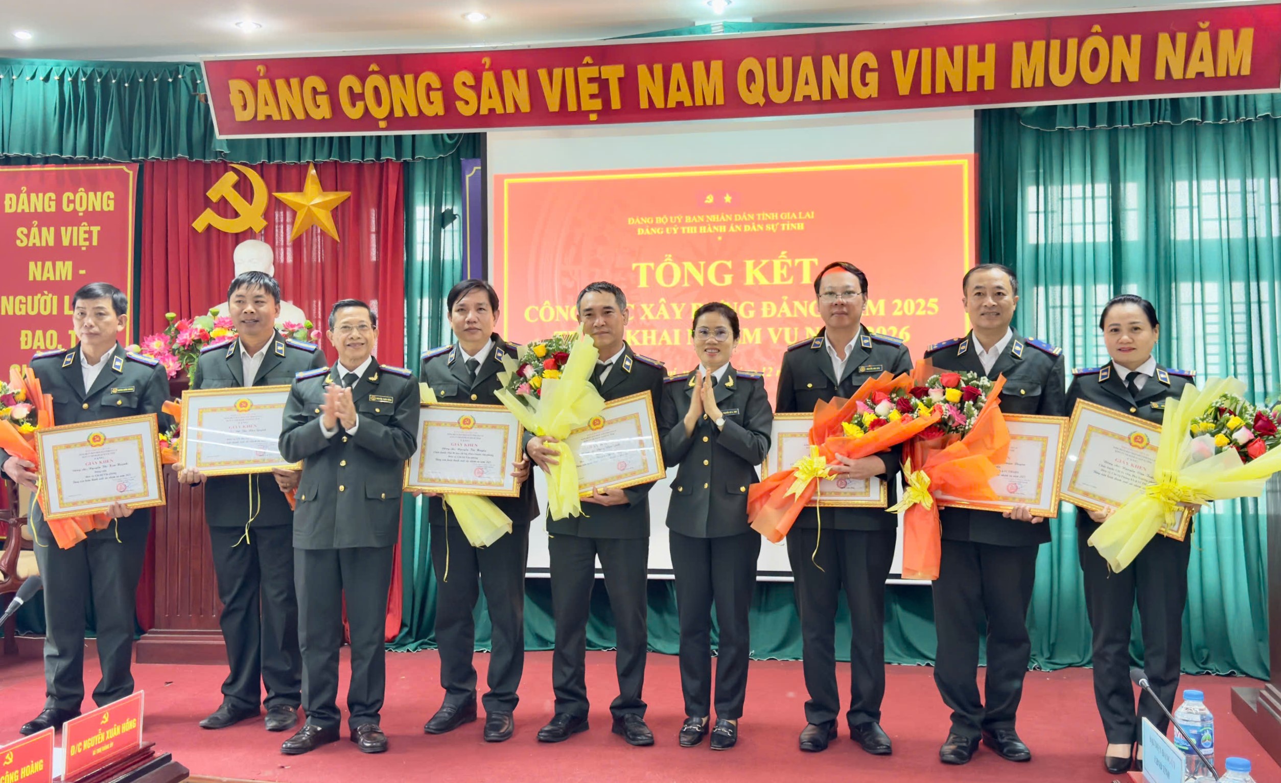 Ngày 25 tháng 12 năm 2025, Đảng bộ Thi hành án dân sự tỉnh Gia Lai tổ chức Hội nghị tổng kết công tác xây dựng Đảng năm 2025, triển khai nhiệm vụ, giải pháp trọng tâm năm 2025. Đồng chí Nguyễn Xuân Hồng, Bí thư Đảng ủy, Trưởng Thi hành án dân sự tỉnh; đồng chí Võ Công Hoàng, Phó Bí thư Đảng ủy, Phó trưởng Thi hành án dân sự tỉnh chủ trì Hội nghị. Tham dự hội nghị, có đồng chí Nguyễn Quang, Phó Chánh văn phòng Đảng ủy UBND tỉnh; các đồng chí trong Ban Thường vụ, Ban Chấp hành Đảng bộ; Bí thư, Phó Bí thư, Chi ủy viên các Chi bộ trực thuộc Đảng ủy Thi hành án dân sự tỉnh; Bí thư Đoàn Thanh niên Thi hành án dân sự tỉnh.