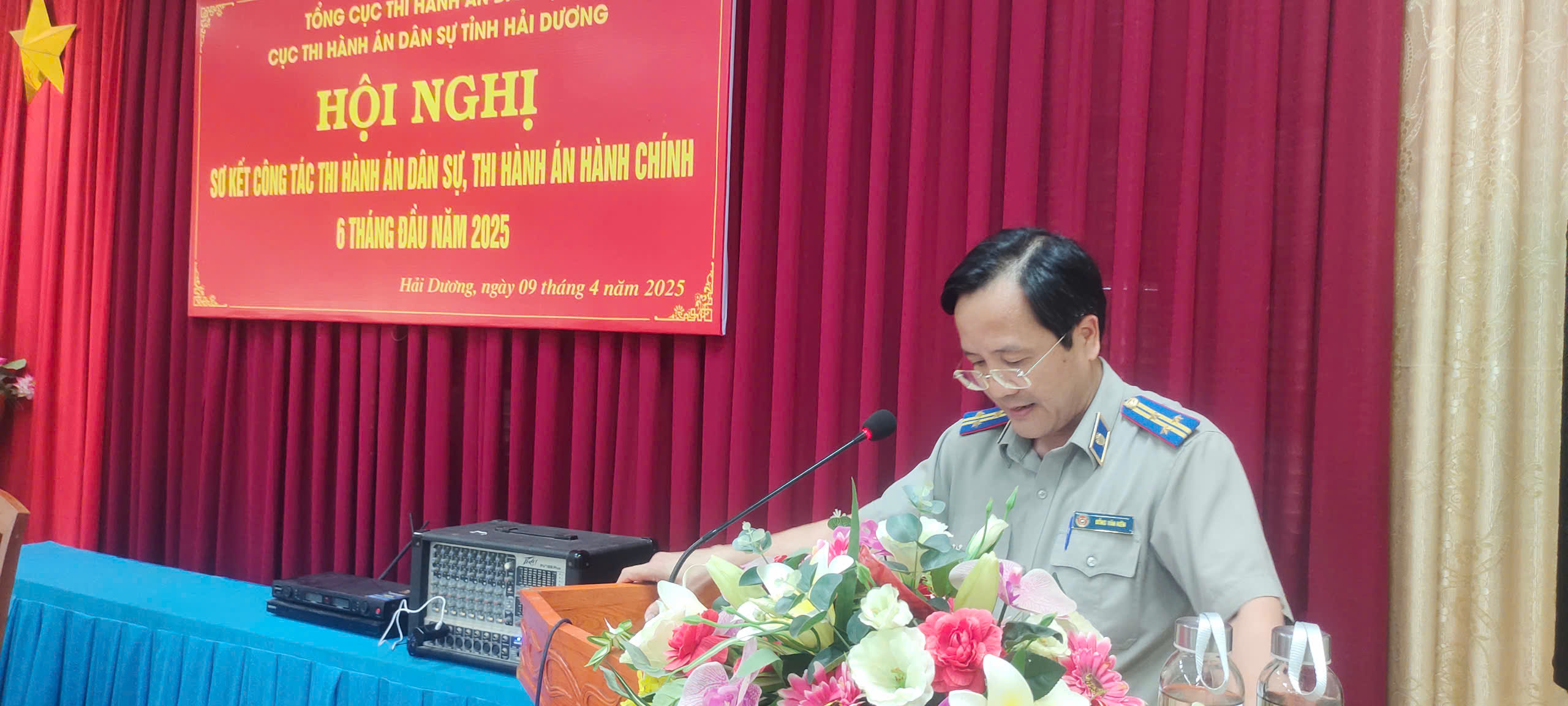 Thực hiện Kế hoạch chỉ đạo của Tổng cục Thi hành án dân sự, chiều ngày 09/4/2025, Cục Thi hành án dân sự tỉnh Hải Dương đã tổ chức Hội nghị sơ kết công tác 6 tháng đầu năm 2025 nhằm đánh giá kết quả công tác thi hành án dân sự, hành chính 6 tháng đầu năm, phương hướng, nhiệm vụ và giải pháp 6 tháng cuối năm 2025. Cục trưởng Nguyễn Văn Tuấn chủ trì Hội nghị.