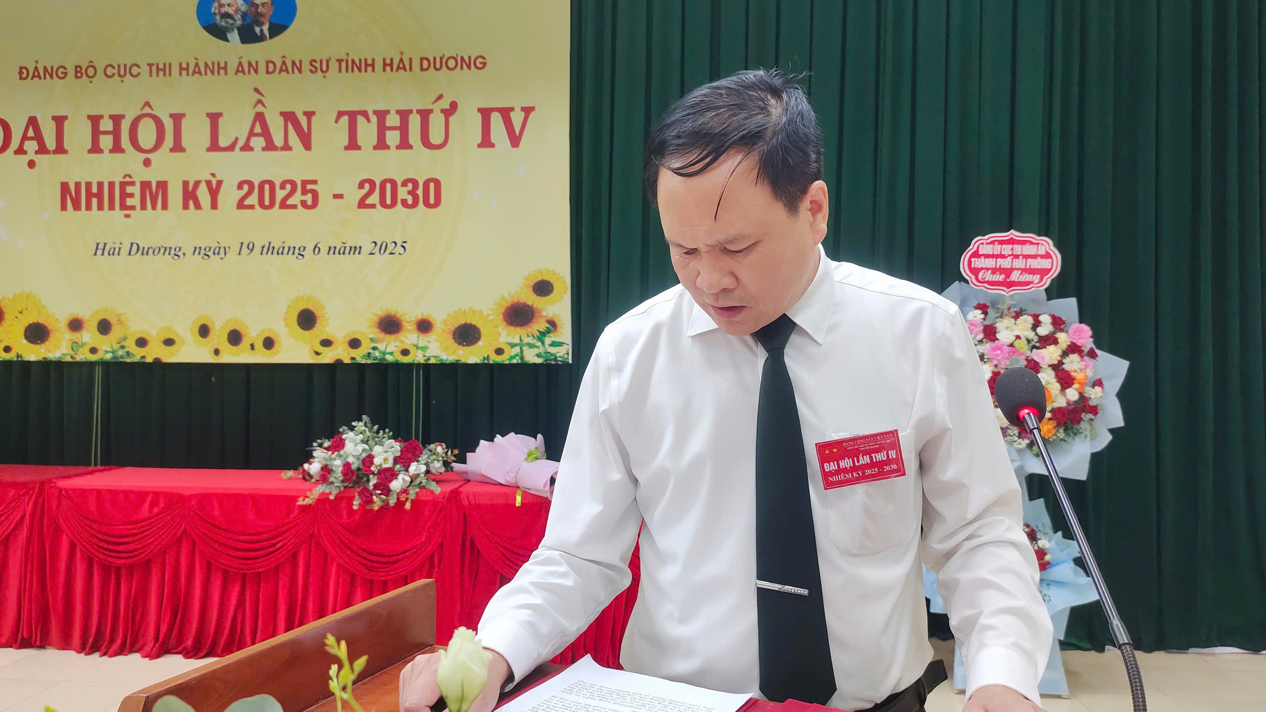 Thực hiện Chỉ thị số 45-CT/TW, ngày 14/4/2025 của Bộ Chính trị, Kế hoạch số 294-KH/TU, ngày 25/4/2025 của Ban Thường vụ Tỉnh ủy và Kế hoạch số 06-KH/ĐU, ngày 08/5/2025 của Đảng ủy Các cơ quan Đảng tỉnh, ngày 19/6/2025 Đảng bộ Cục Thi hành án dân sự (THADS) tỉnh Hải Dương tổ chức  Đại hội lần thứ IV, nhiệm kỳ 2025-2030.