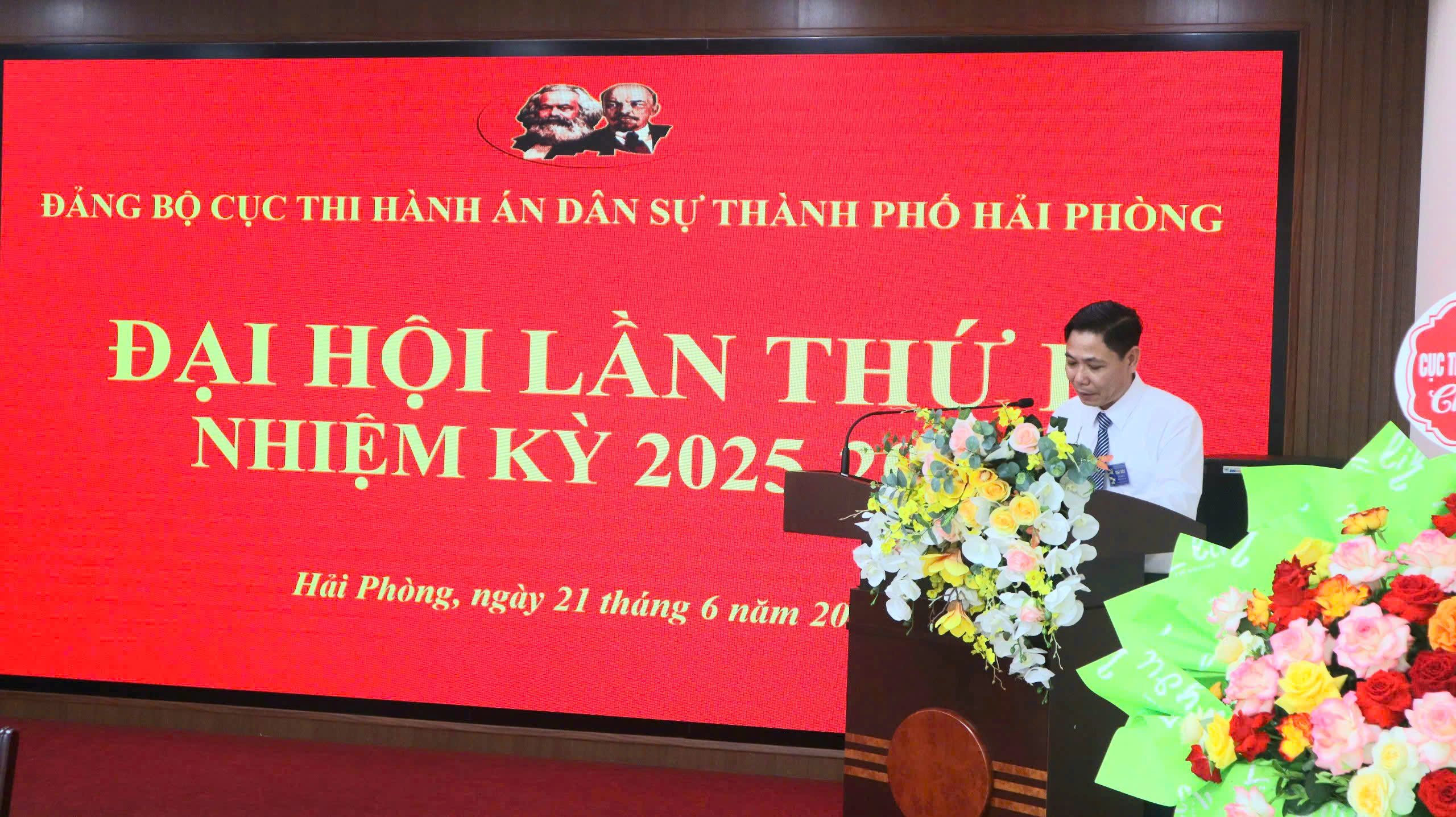Phát biểu bế mạc Đại hội, đồng chí Trần Hồng Quang - Bí thư Đảng ủy, Cục trưởng Cục THADS thành phố khẳng định quyết tâm cùng tập thể Đảng bộ thực hiện thắng lợi các mục tiêu đề ra, góp phần nâng cao hiệu quả công tác thi hành án dân sự, phục vụ tốt hơn nhiệm vụ chính trị của đơn vị. Sau thời gian làm việc khẩn trương, nghiêm túc, đúng theo Điều lệ Đảng, Đại hội Đảng bộ Cục THADS tỉnh lần thứ II, nhiệm kỳ 2025-2030 đã thành công tốt đẹp, với tinh thần đoàn kết và nhất trí cao, toàn thể đảng viên Đảng bộ đã biểu quyết thông qua Nghị quyết Đại hội và quyết tâm hoàn thành thắng lợi các mục tiêu, nhiệm vụ chính trị nhiệm kỳ 2025-2030.