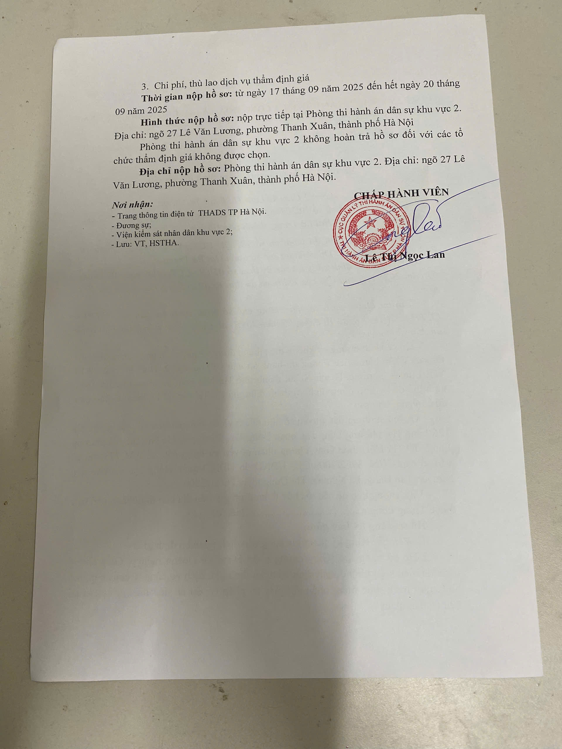 Thông báo số 632/TB-CCTHADS ngày 16/6/2021 của Chi cục THADS quận Thanh Xuân về việc lựa chọn tổ chức thẩm định giá