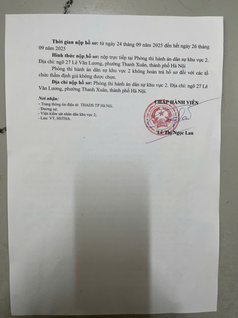 Phòng Thi hành án dân sự Khu vực 2 - Thông báo về việc lựa chọn tổ chức thẩm định giá tài sản số 77/TB - THADS (KV2) ngày 24/9/2025