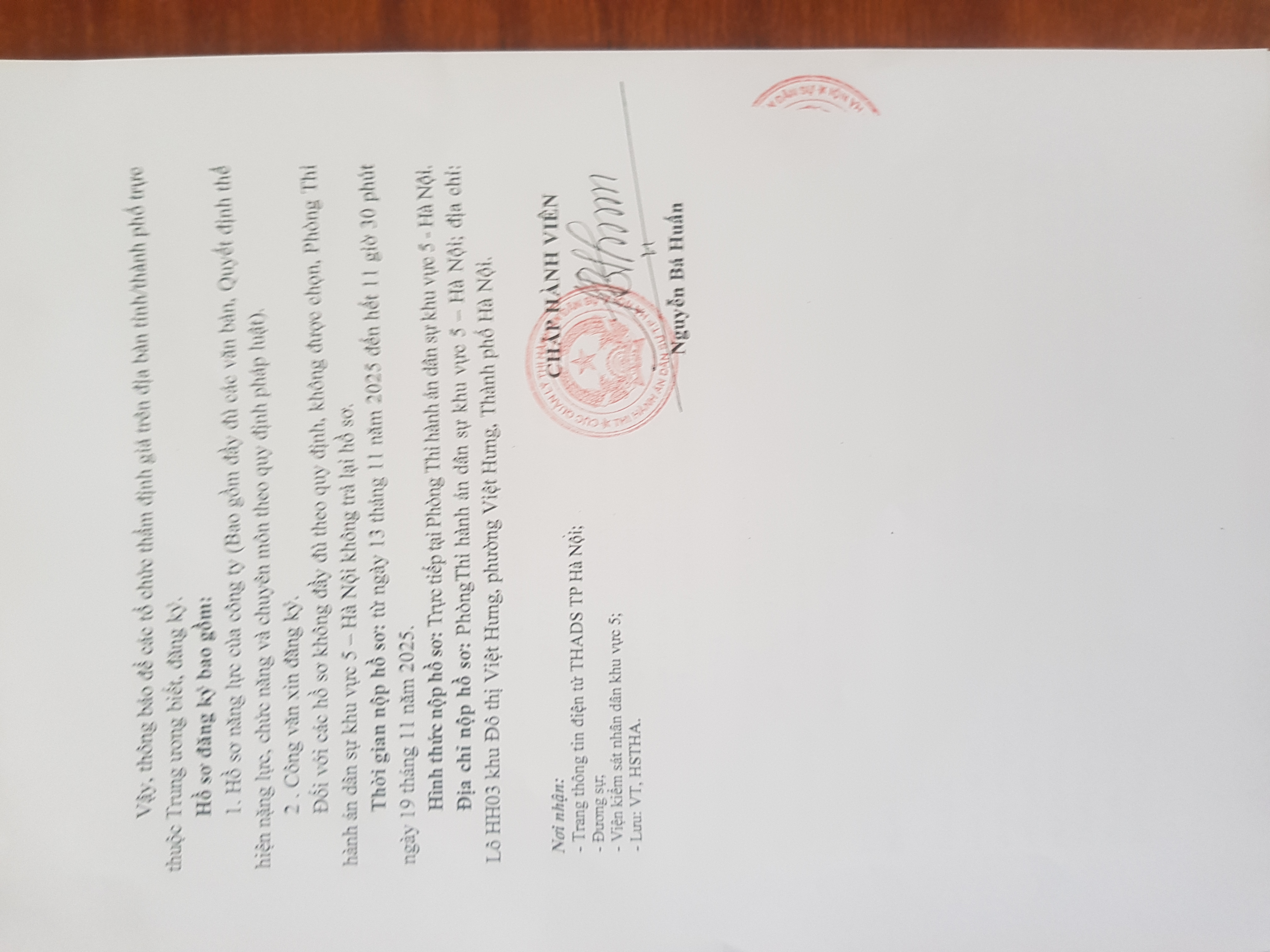 Thông báo tổ chức thẩm định giá tài sản số 138/TB-THADS(KV5) ngày 13/11/2025
