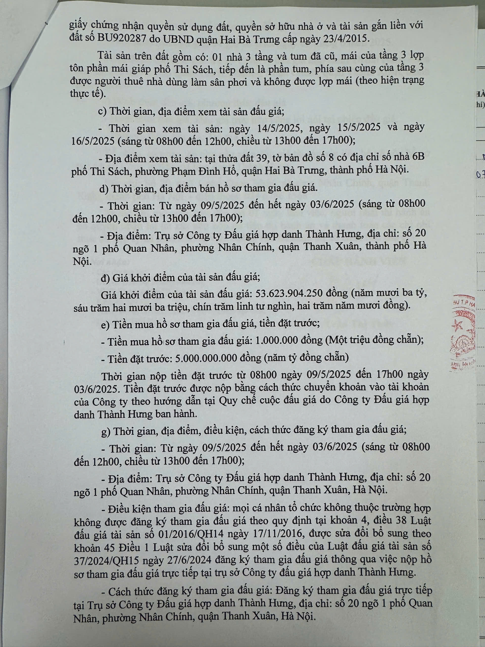 Thông báo bán đấu giá tài sản