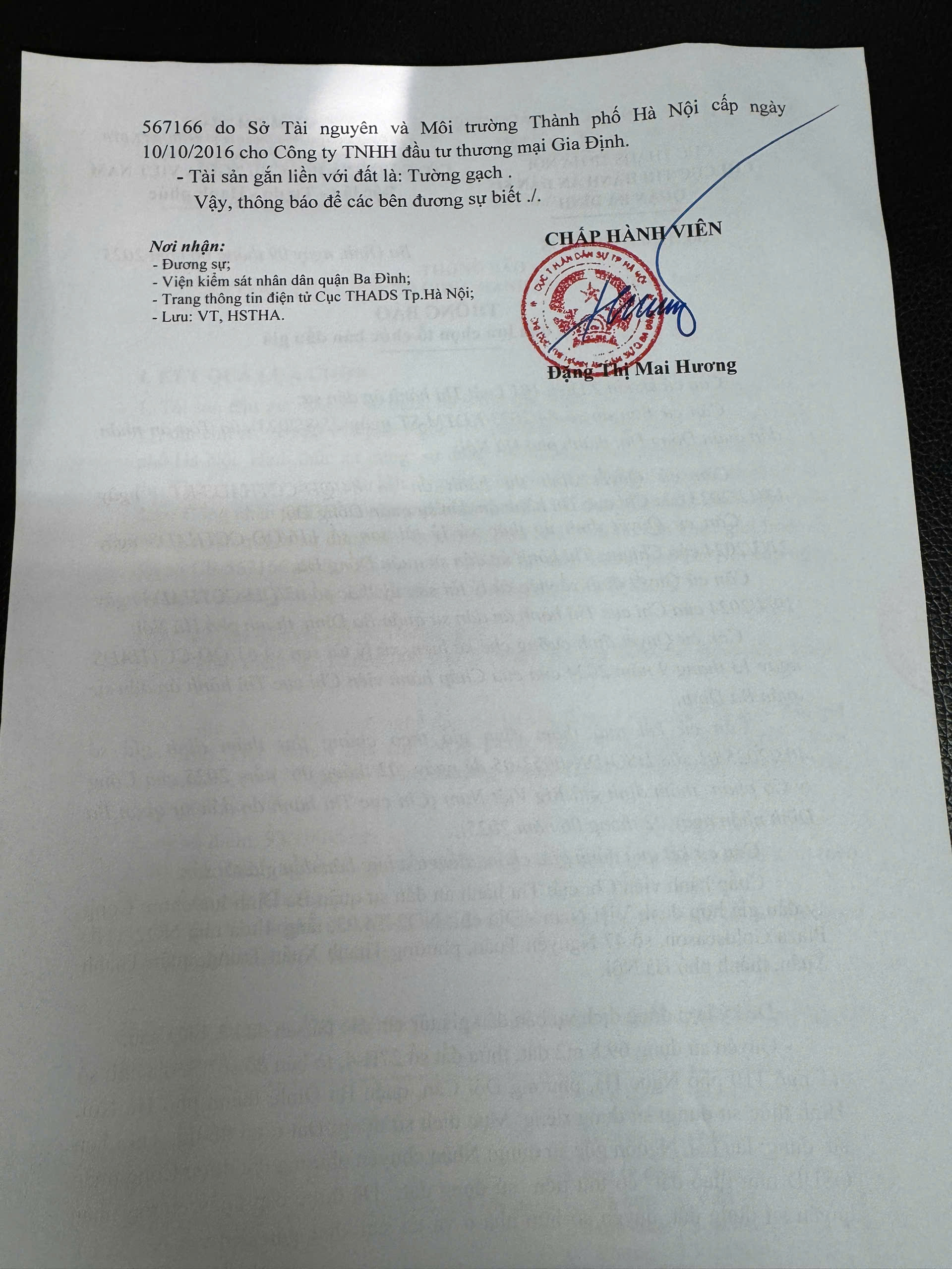Thông báo về việc lựa chọn tổ chức đấu giá tài sản kê biên đảm bảo thi hành án số 295 TB-THA ngày 19/7/2017 của Chi cục THADS quận Long Biên