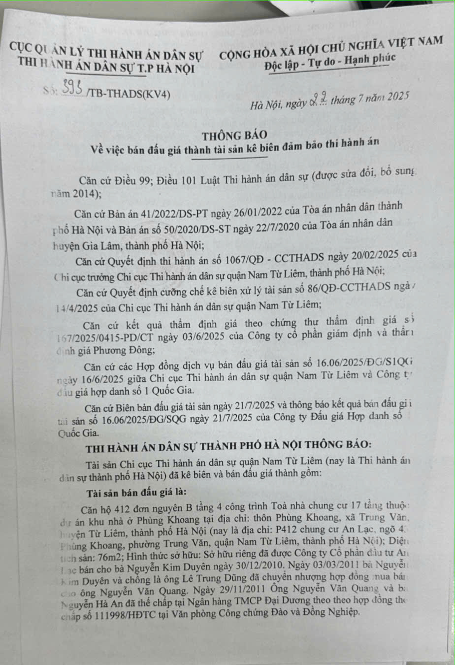 Thông báo 393/TB-THADS(KV4) ngày 22/7/2025 của Phòng THADS khu vực 4, TP Hà Nội