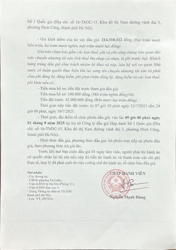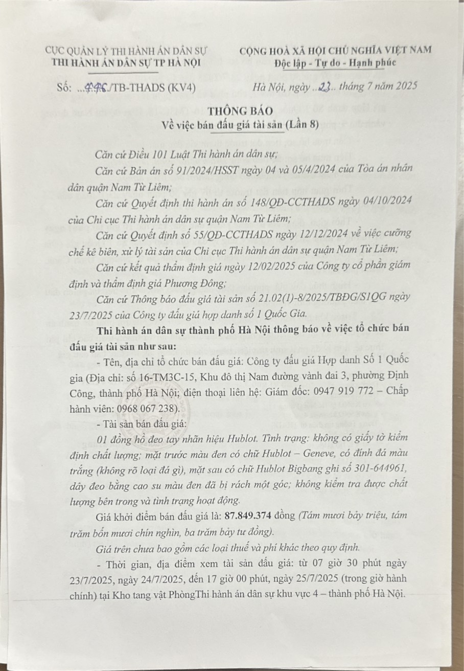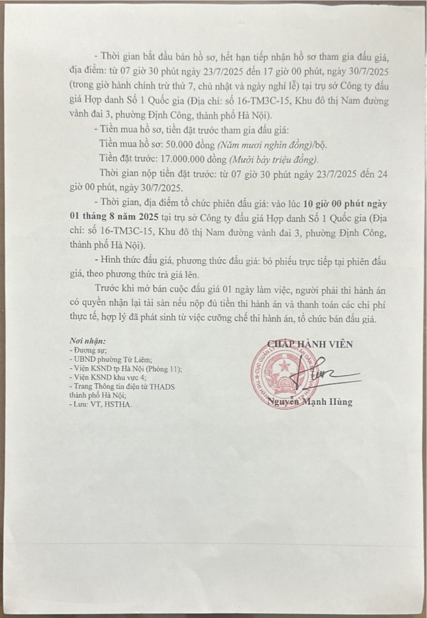 Phòng Thi hành án dân sự khu vực 4 Hà Nội: Thông báo 445, 446 ngày 23/7/2025