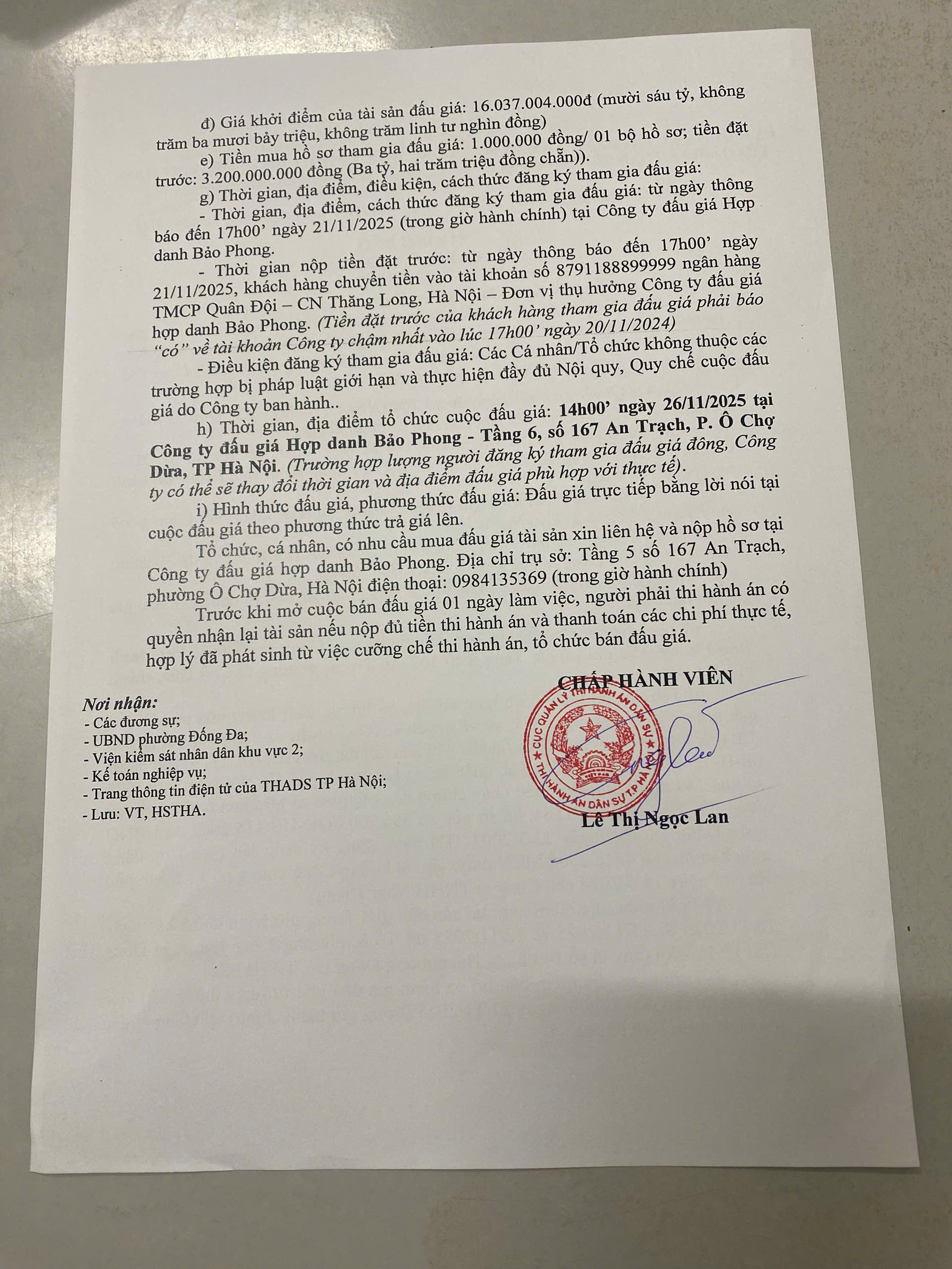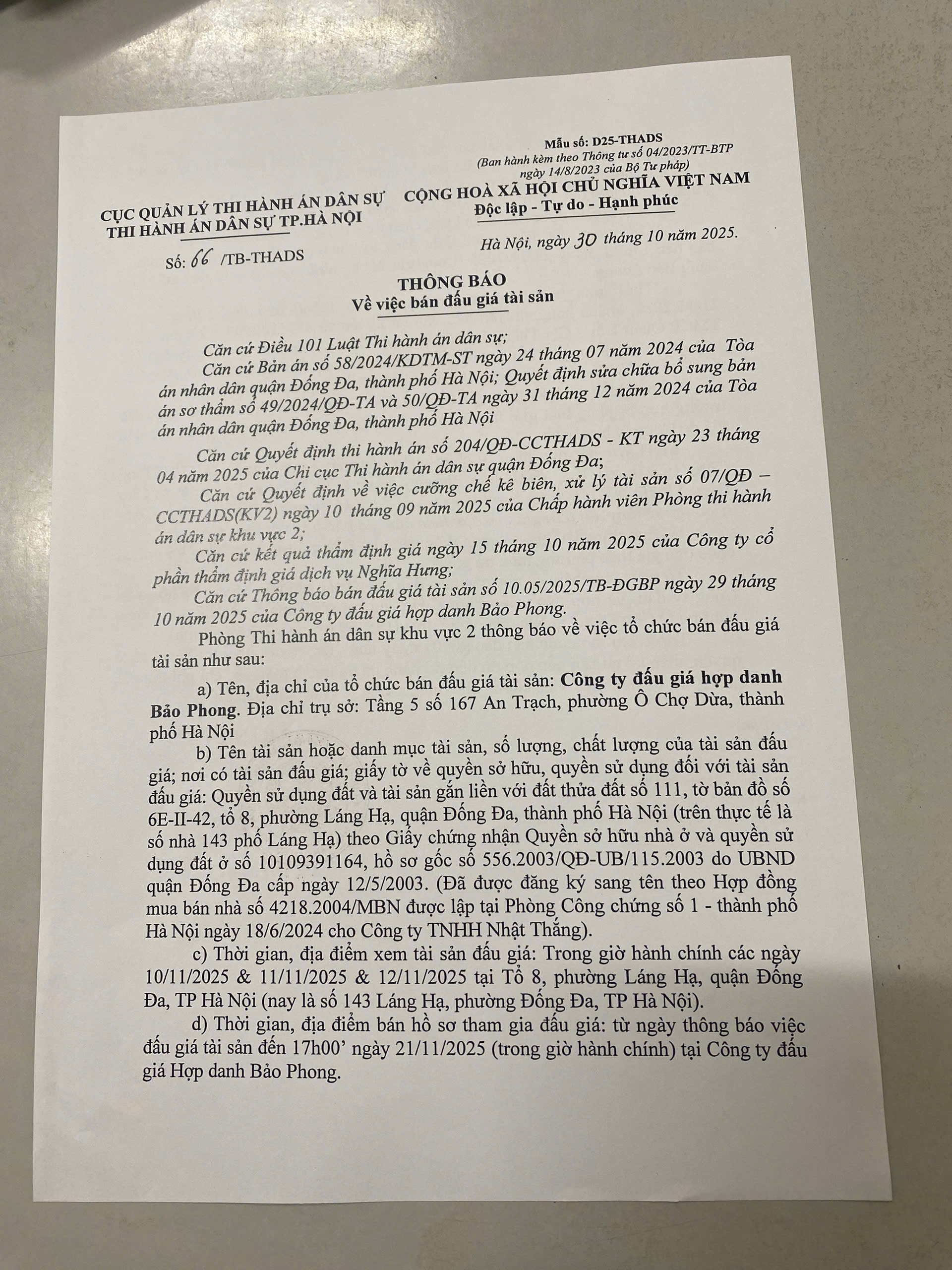 Phòng Thi hành án dân sự Khu vực 2 Thông báo về việc bán đấu giá tài sản số 66/TB - THADS ngày 30/10/2025