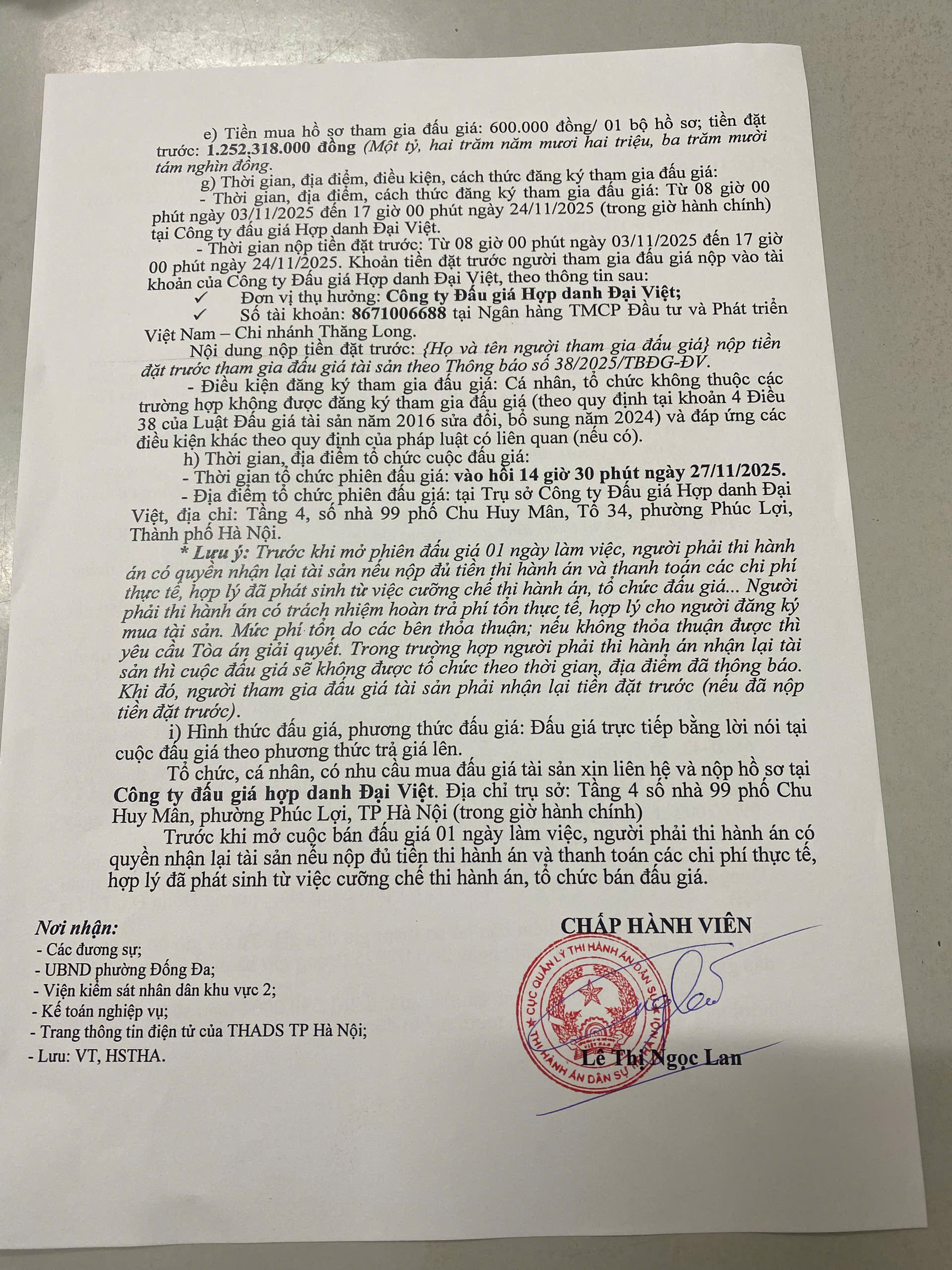 Thông báo bán đấu giá tài sản