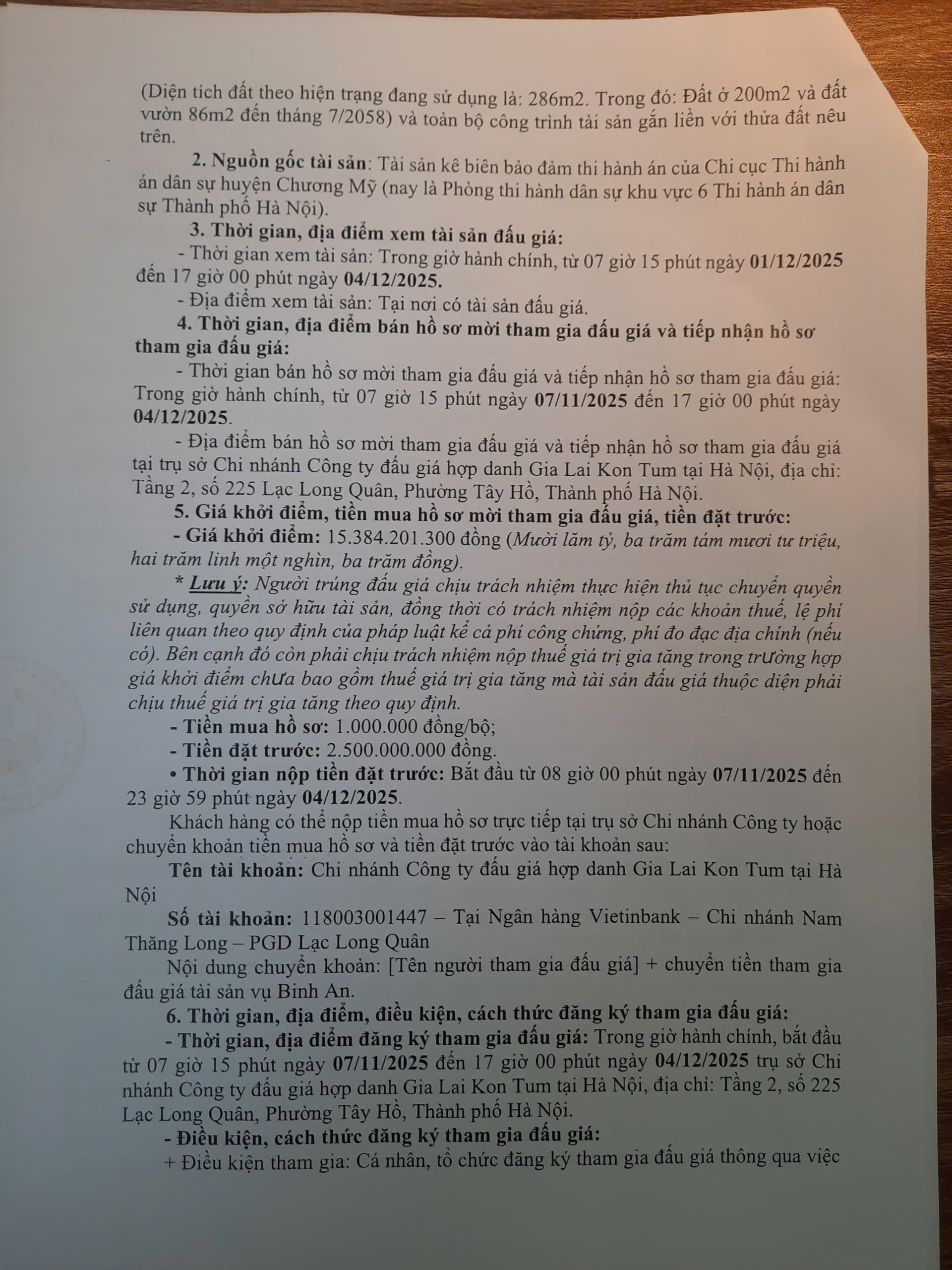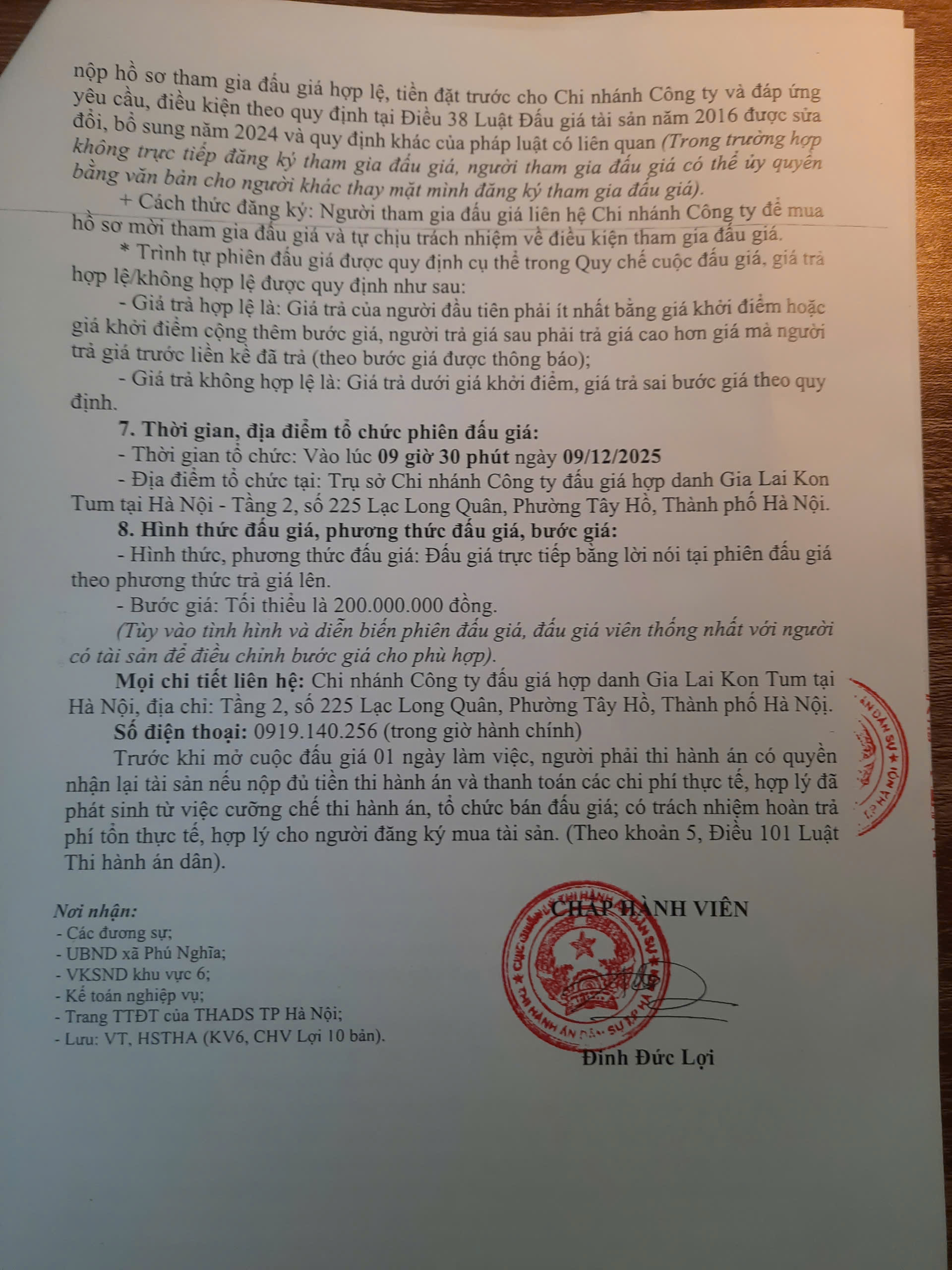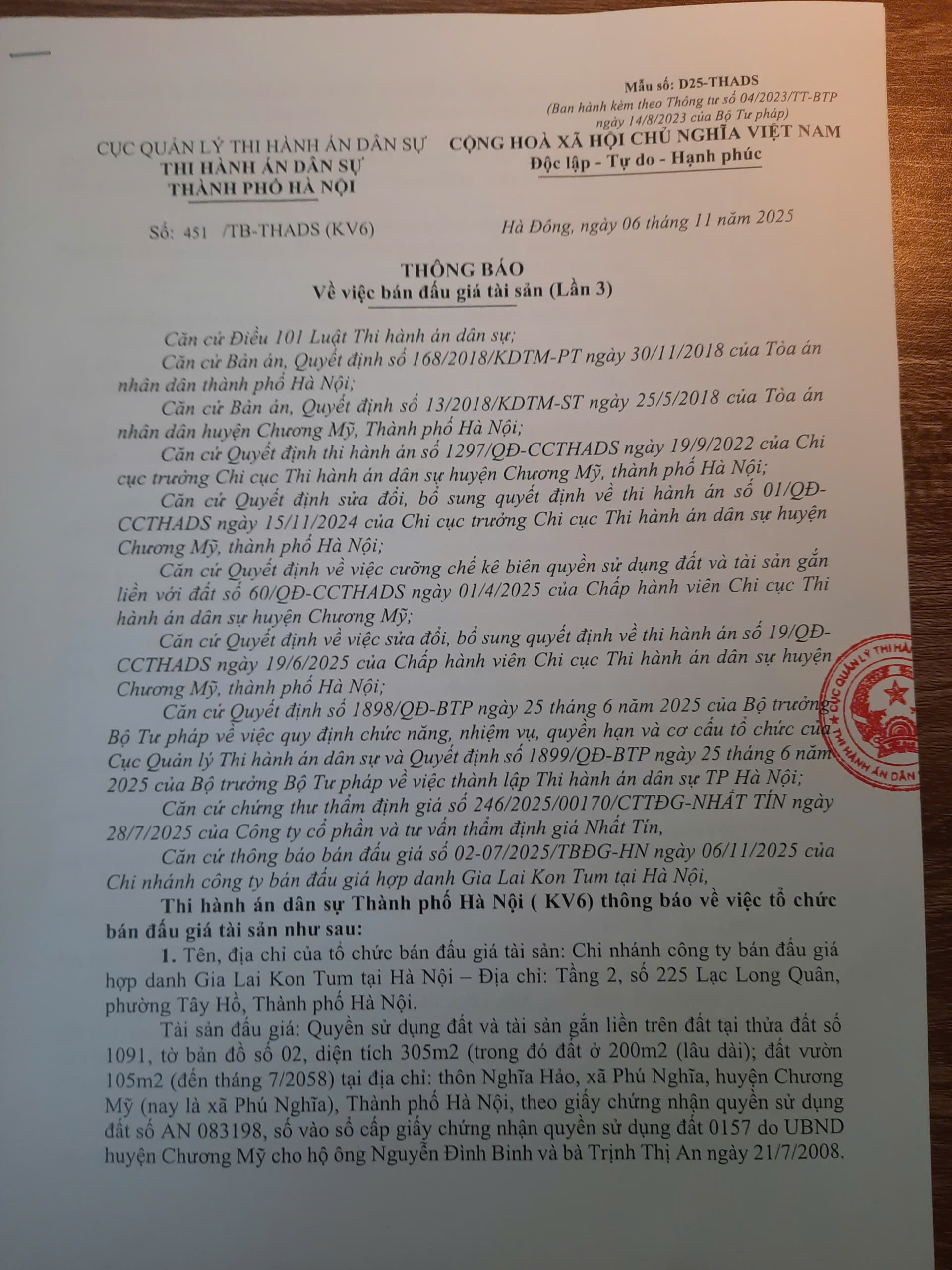 Thông báo bán đấu giá số 451 ngày 06/11/2025 của CHV Lợi Phòng thi hành án dân sự KV6-Hà Nội