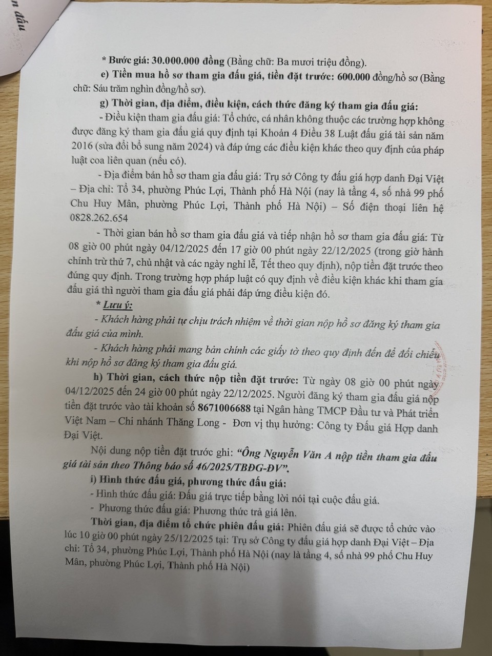 Thông báo bán đấu giá tài sản