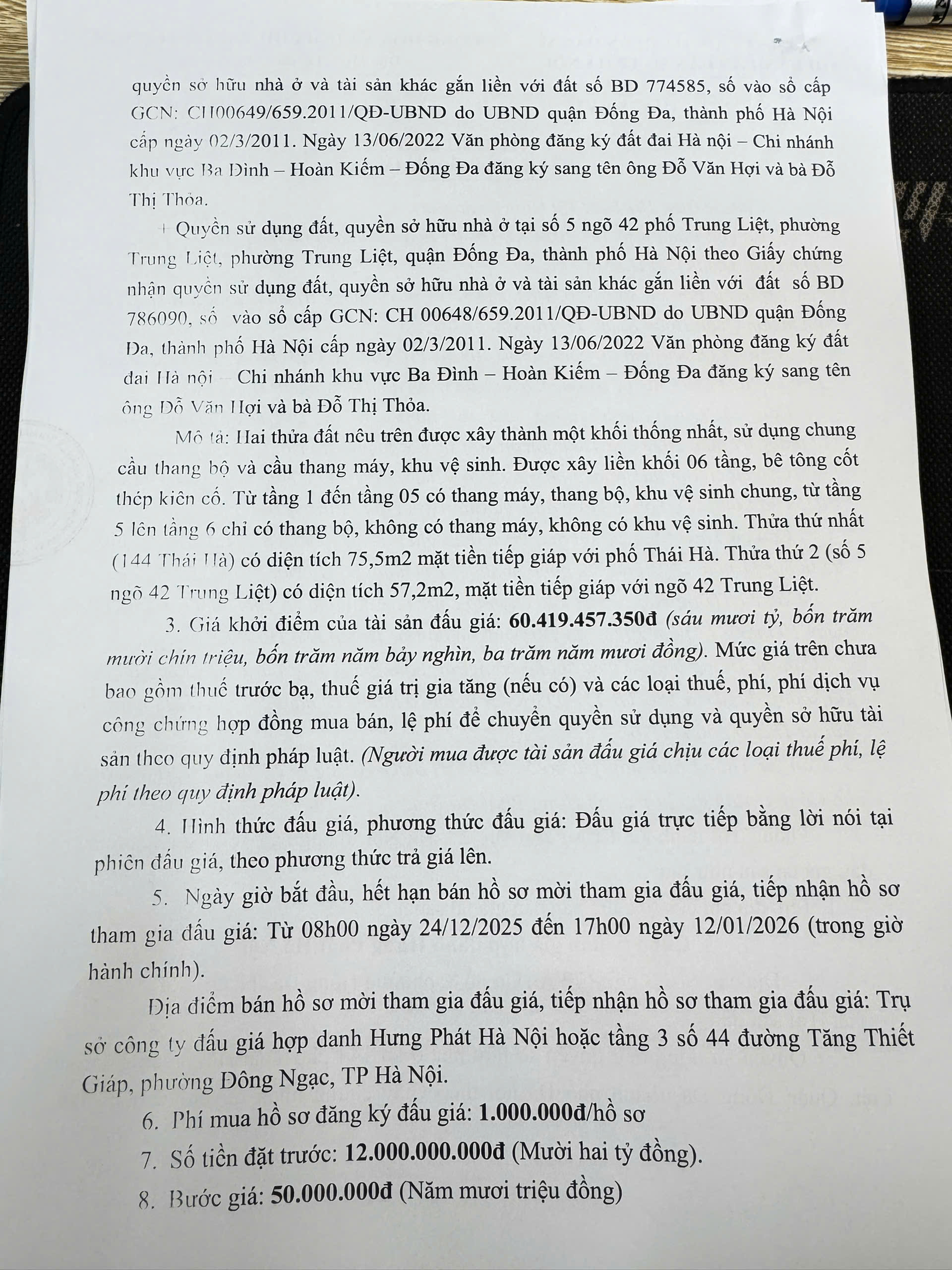 Thông báo bán đấu giá tài sản