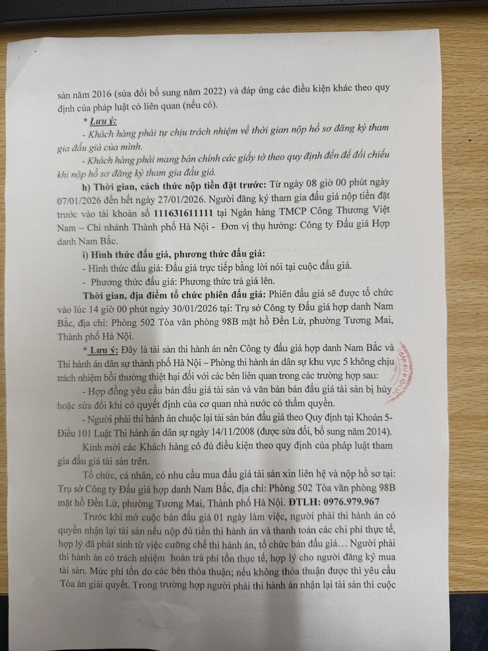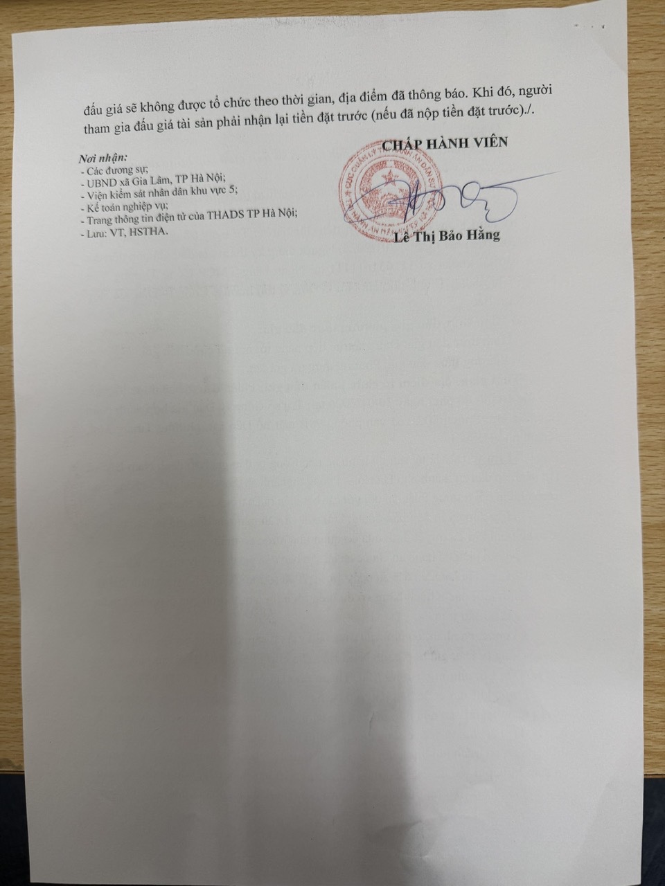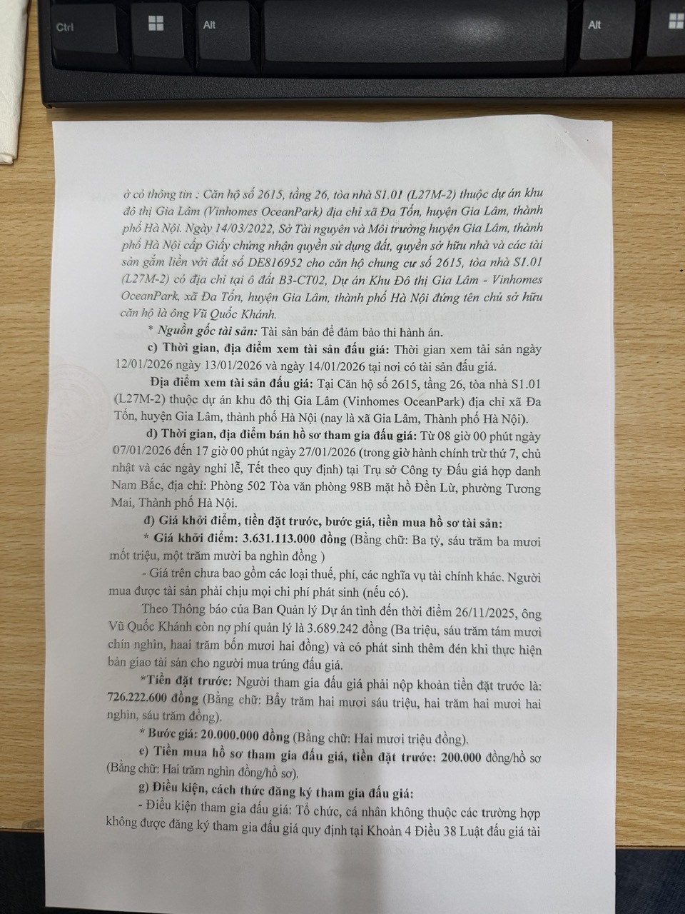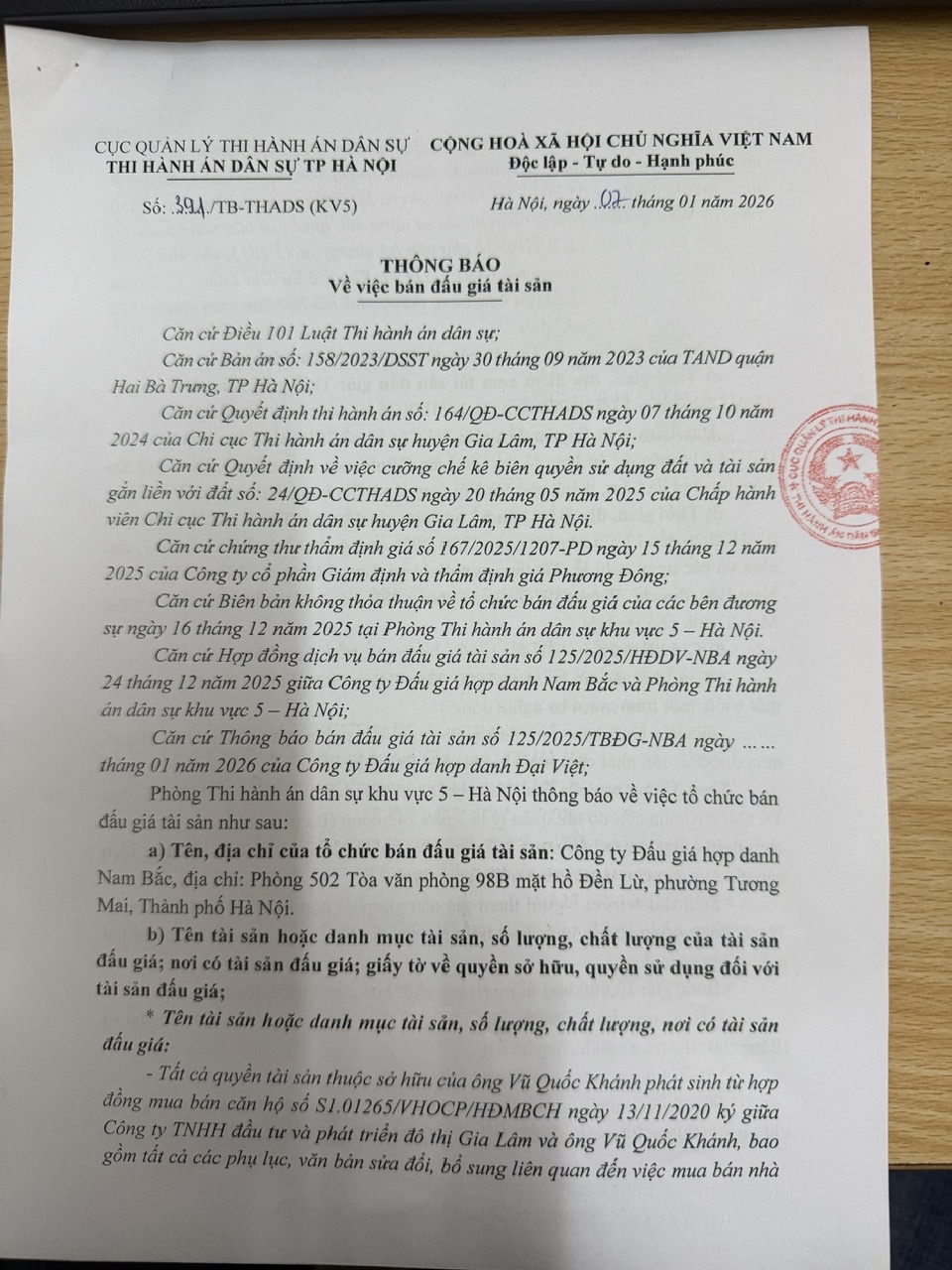 Phòng THADS KV5 thông báo vv bán đấu giá tài sản số 391/TB-THADS (KV1) ngày 07/01/2026