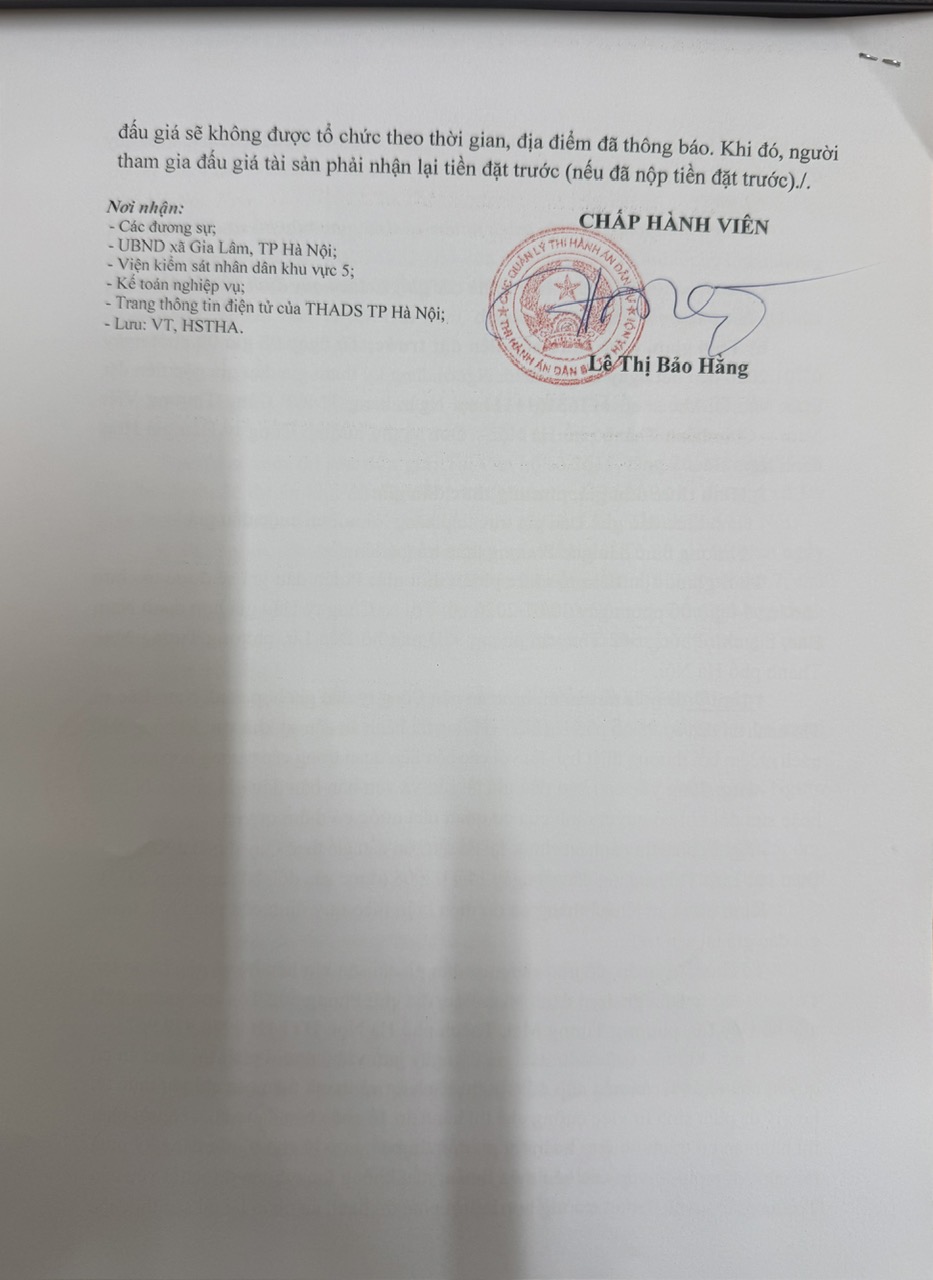 Thông báo về việc lựa chọn tổ chức đấu giá tài sản kê biên đảm bảo thi hành án số 295 TB-THA ngày 19/7/2017 của Chi cục THADS quận Long Biên
