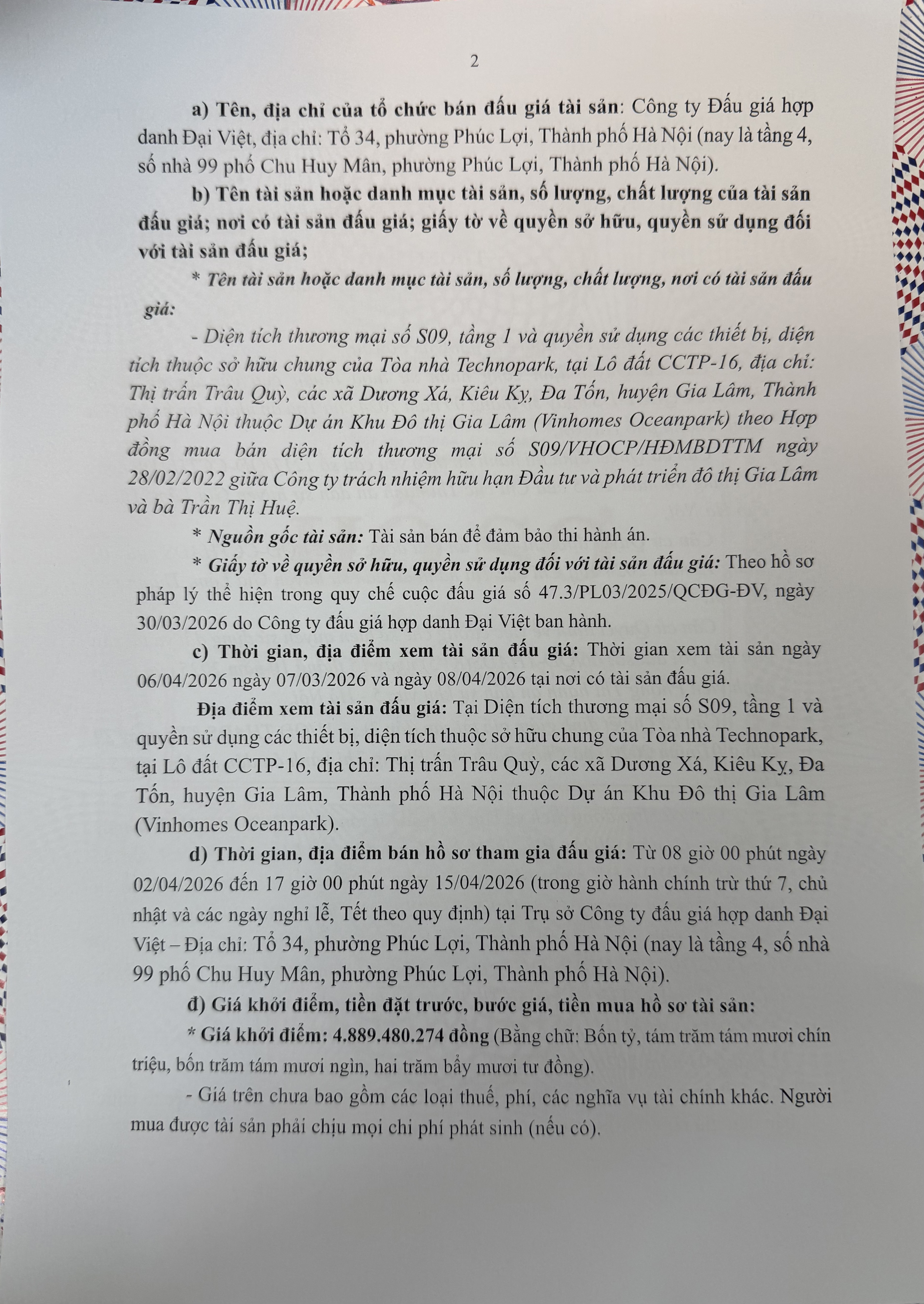 Thông báo bán đấu giá tài sản