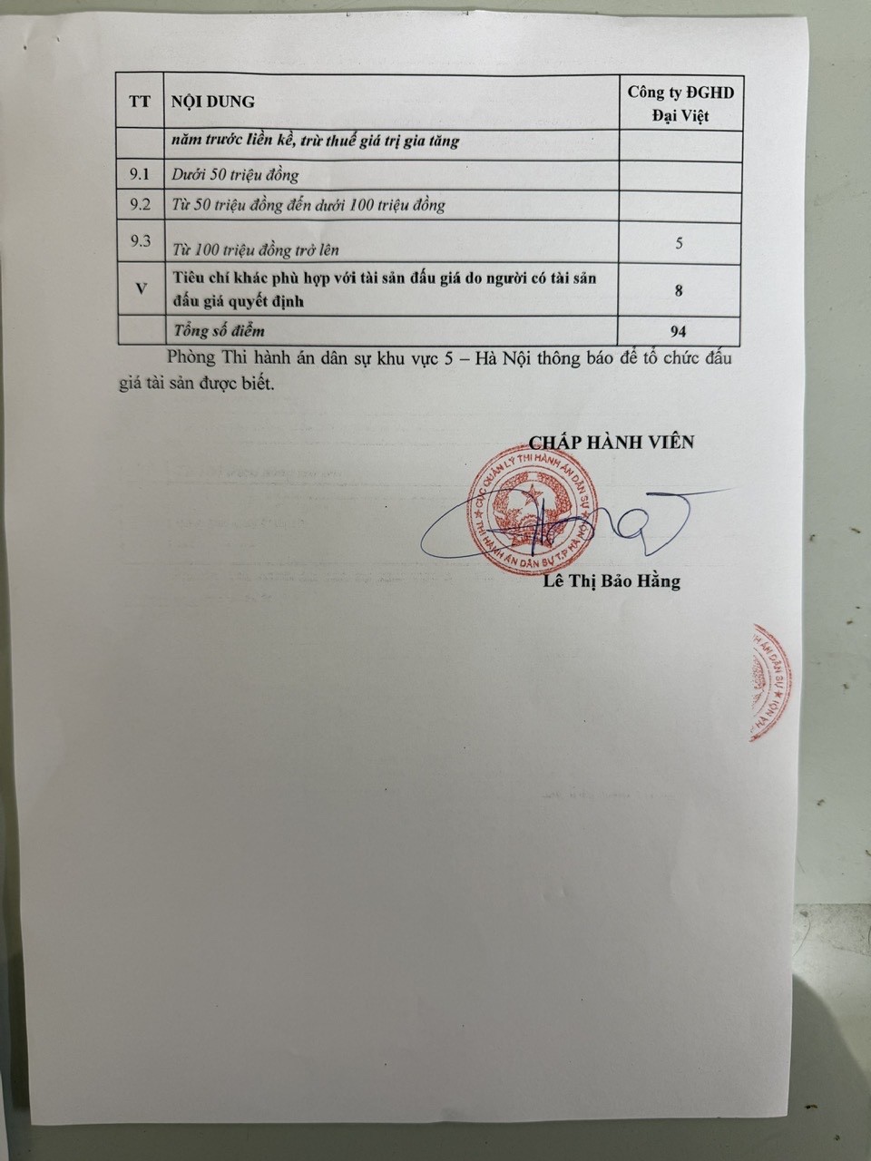 Thông báo số 212/TB-THADS KV5 vv TB kết quả lựa chọn tổ chức Bán đấu giá