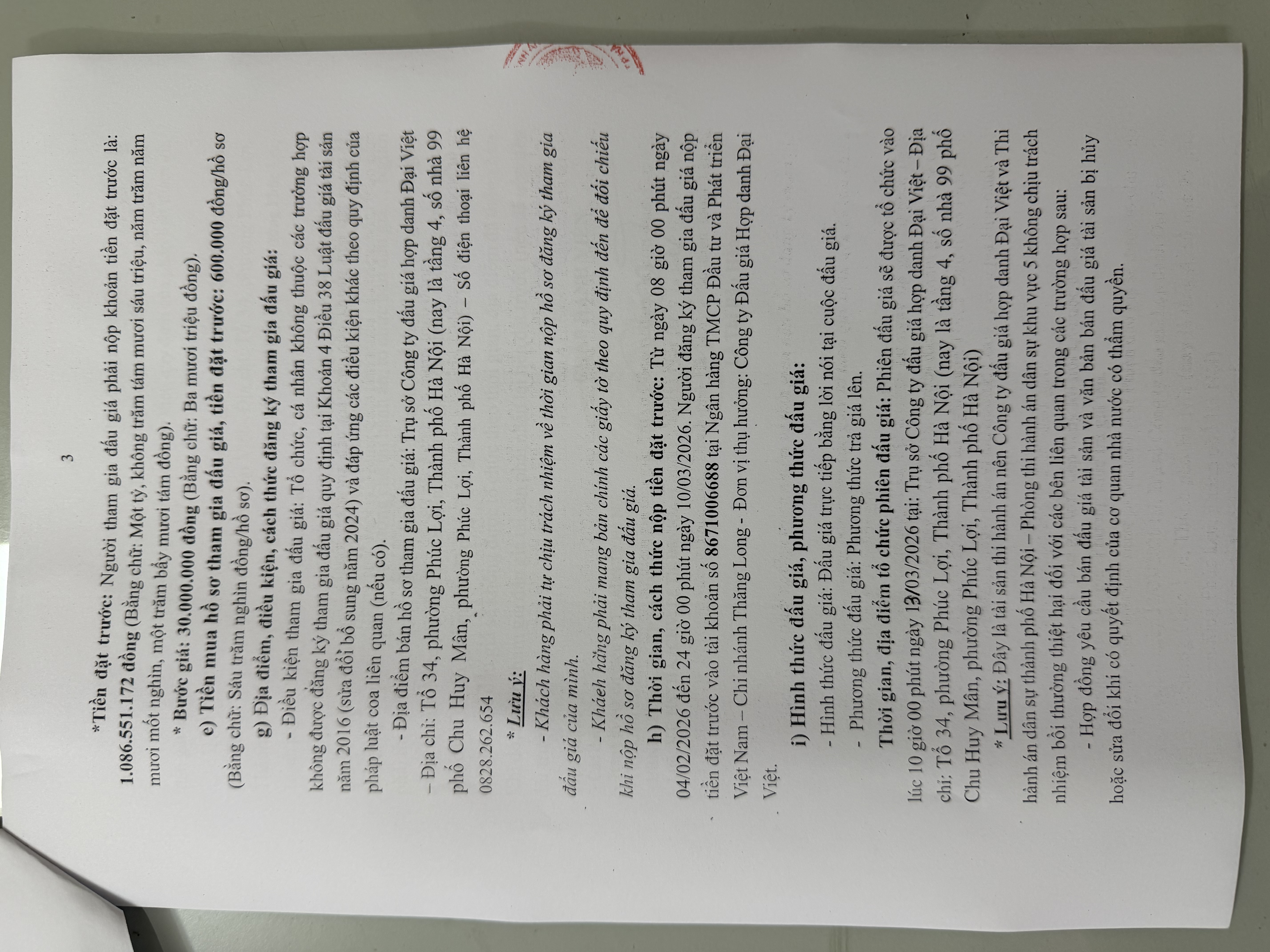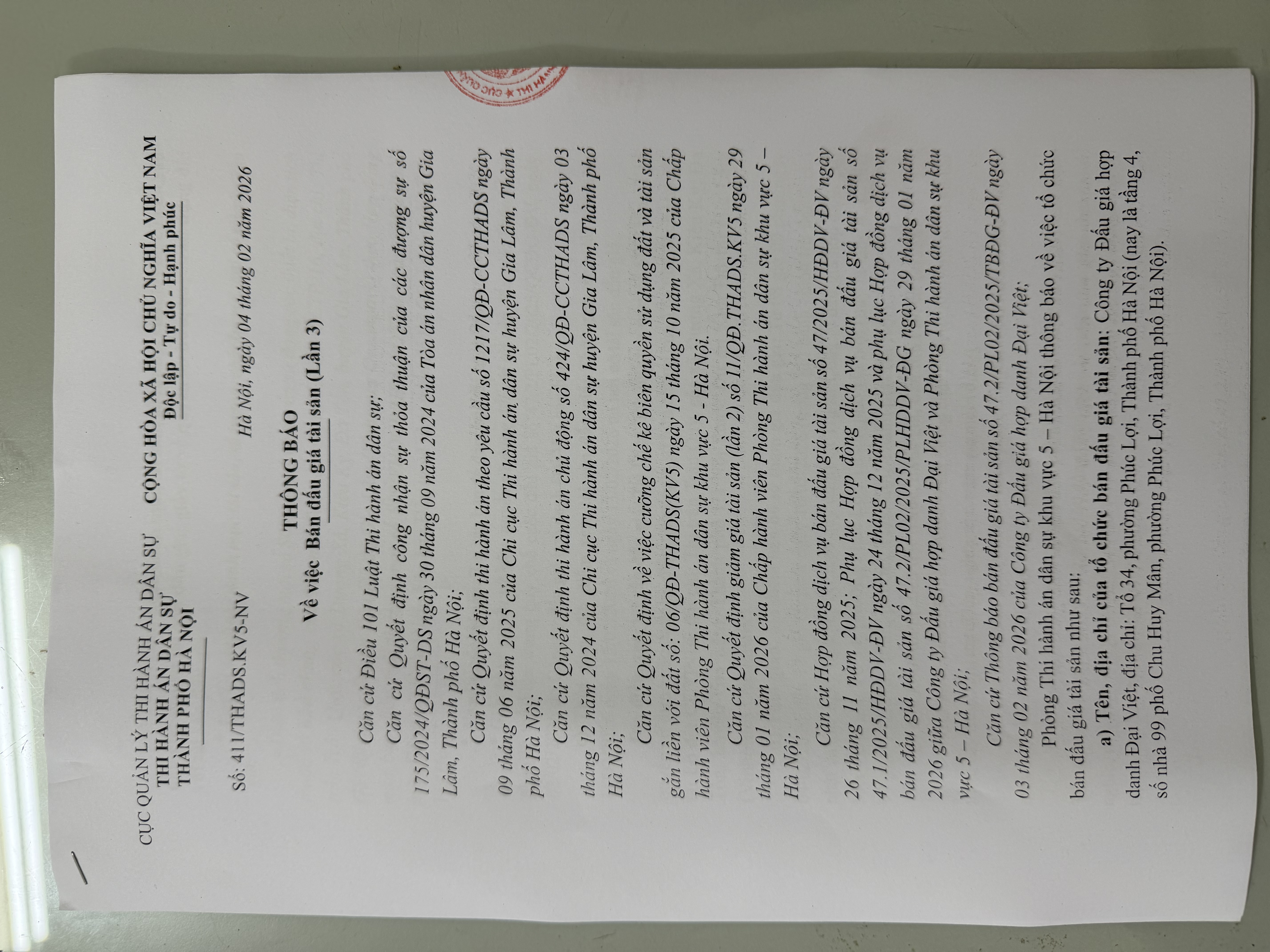Phòng Thi hành án dân sự KV5 thông báo bán đấu giá tài sản lần 3 số 411/THA.KV5 ngày 04/2/2026
