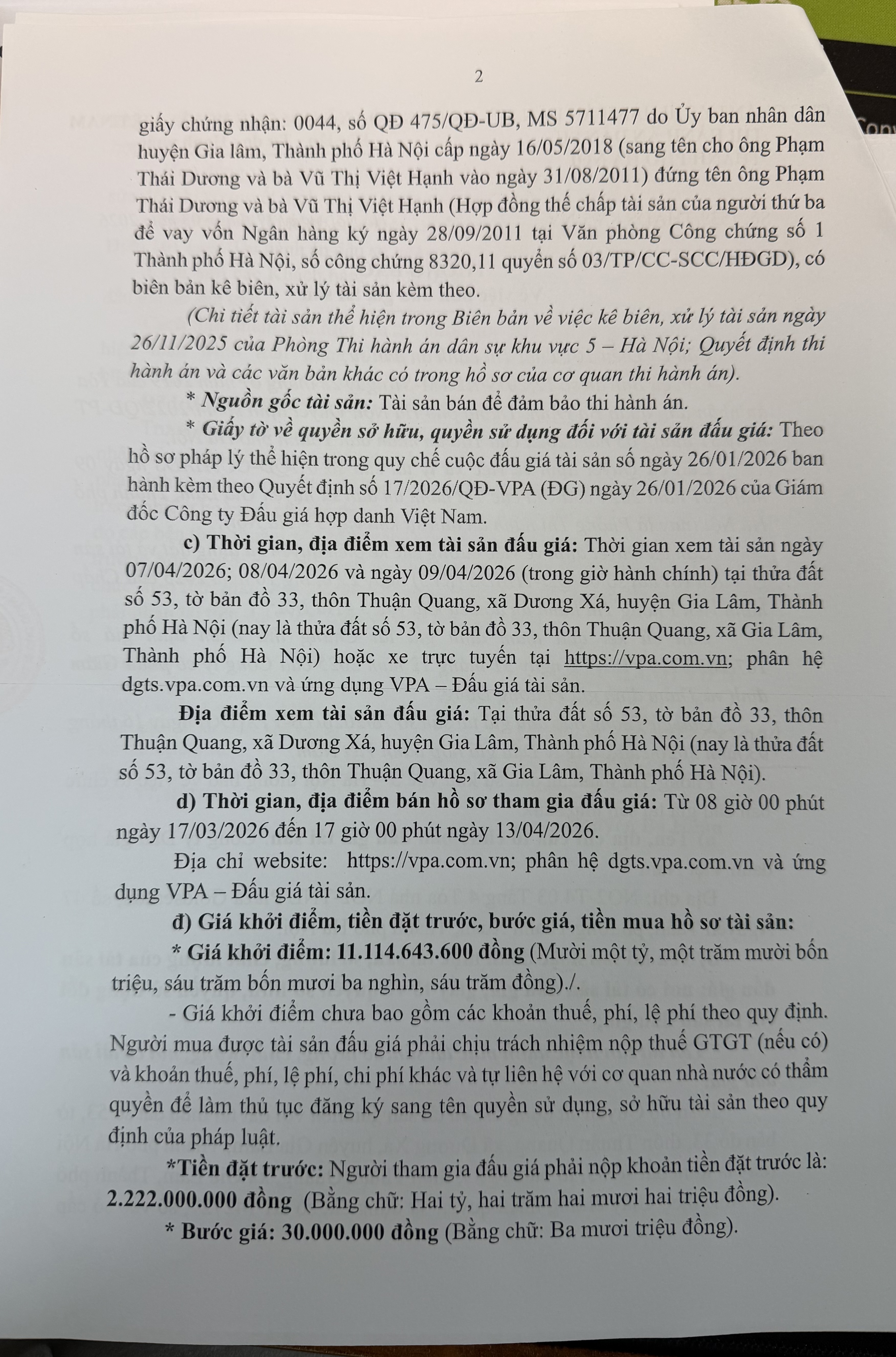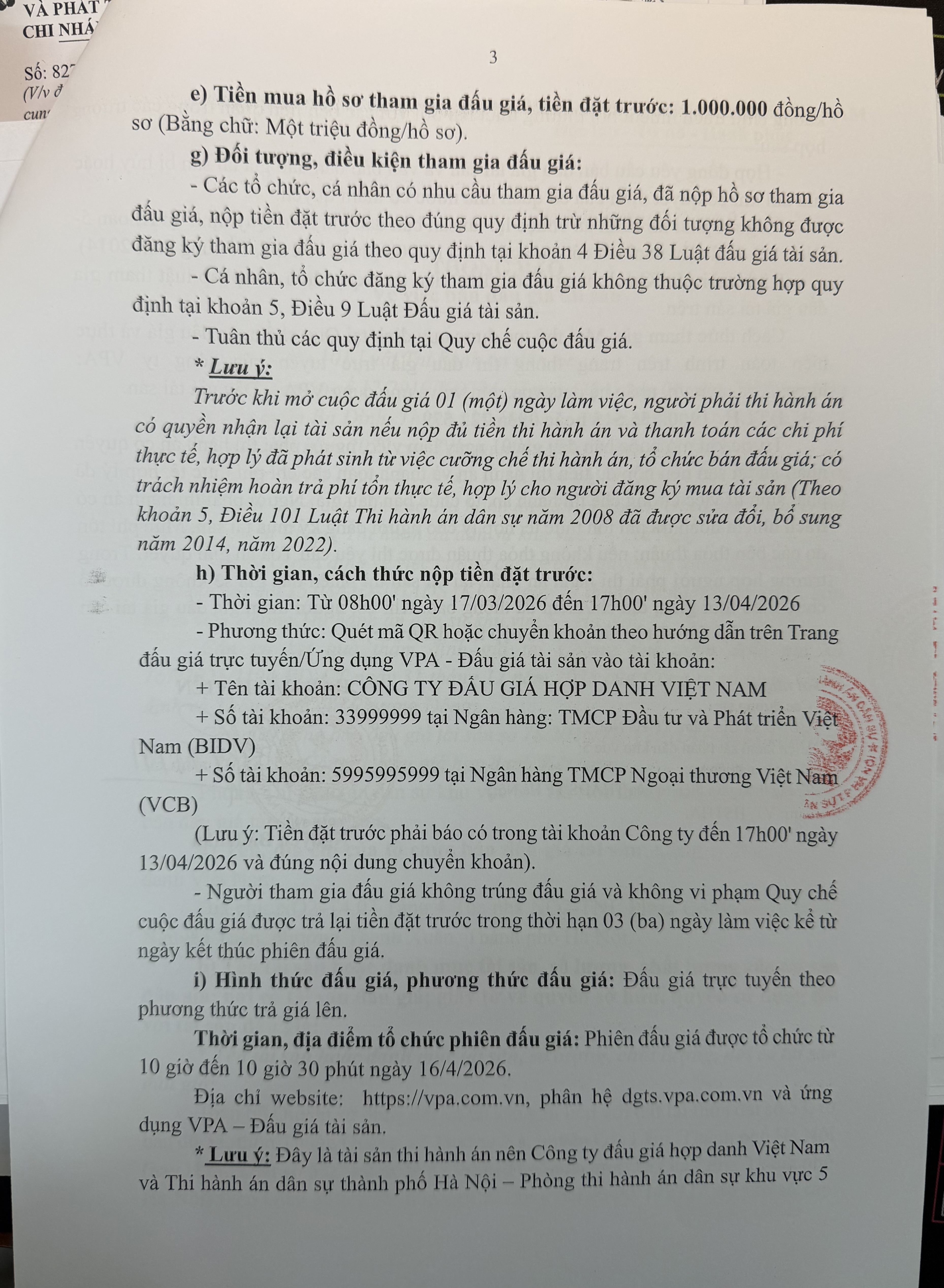 Thông báo bán đấu giá tài sản