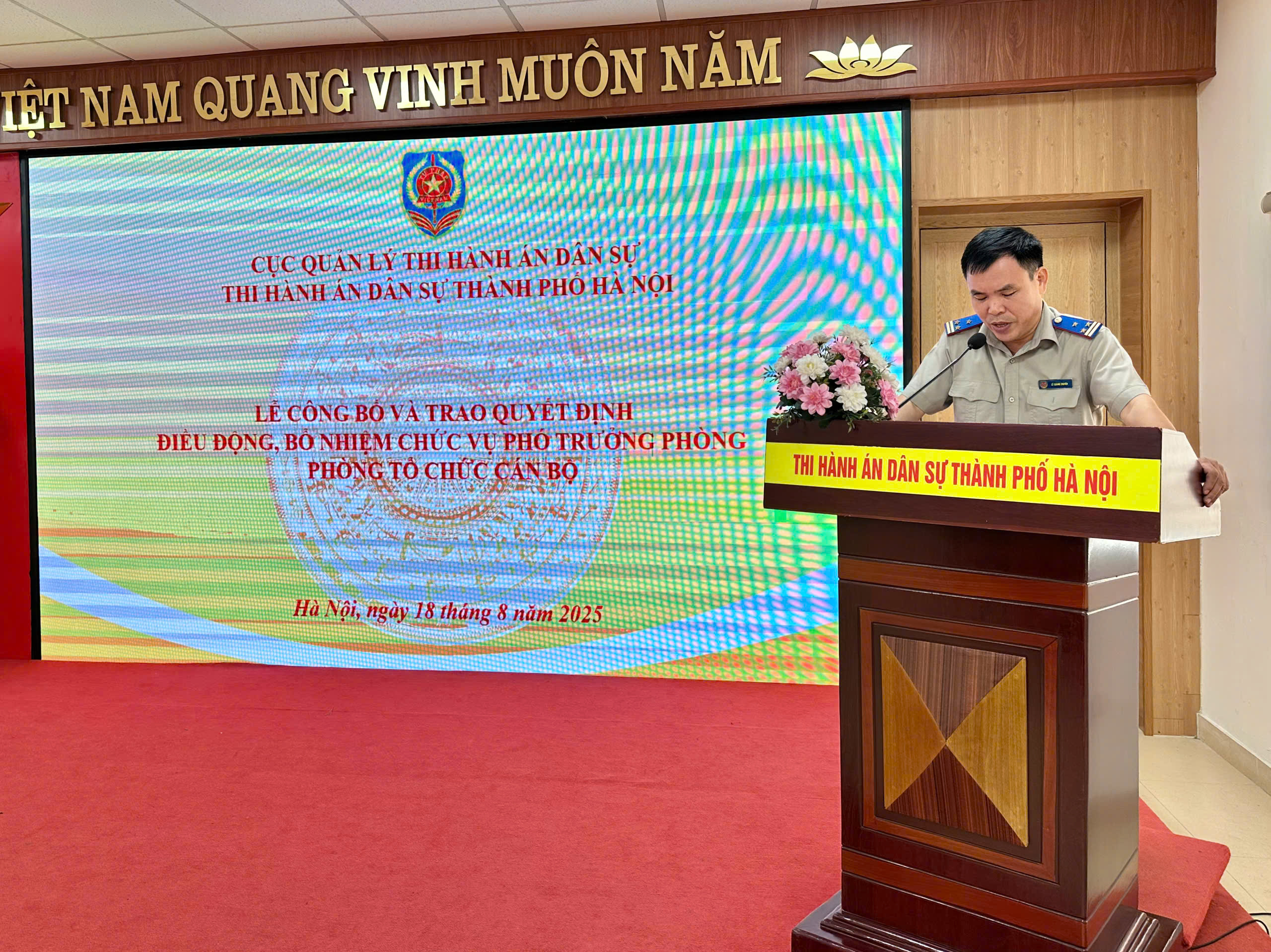 Sáng ngày 18/8/2025, THADS thành phố Hà Nội long trọng tổ chức lễ công bố và trao quyết định điều động, bổ nhiệm chức vụ Phó Trưởng phòng Phòng Tổ chức cán bộ.