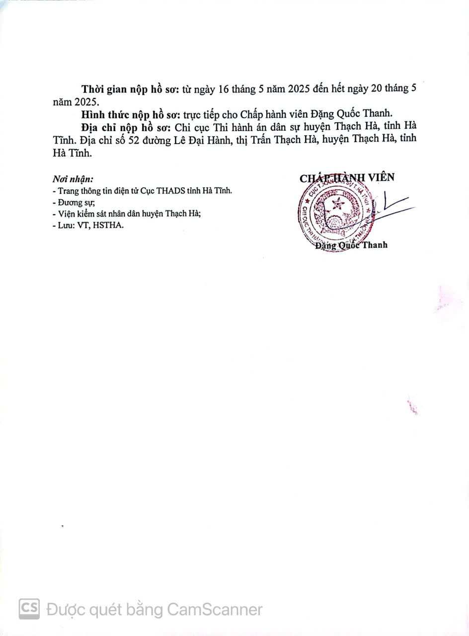 CHI CỤC THI HÀNH ÁN DÂN SỰ HUYỆN THẠCH HÀ TB Về việc lựa chọn tổ chức thẩm định giá tài sản