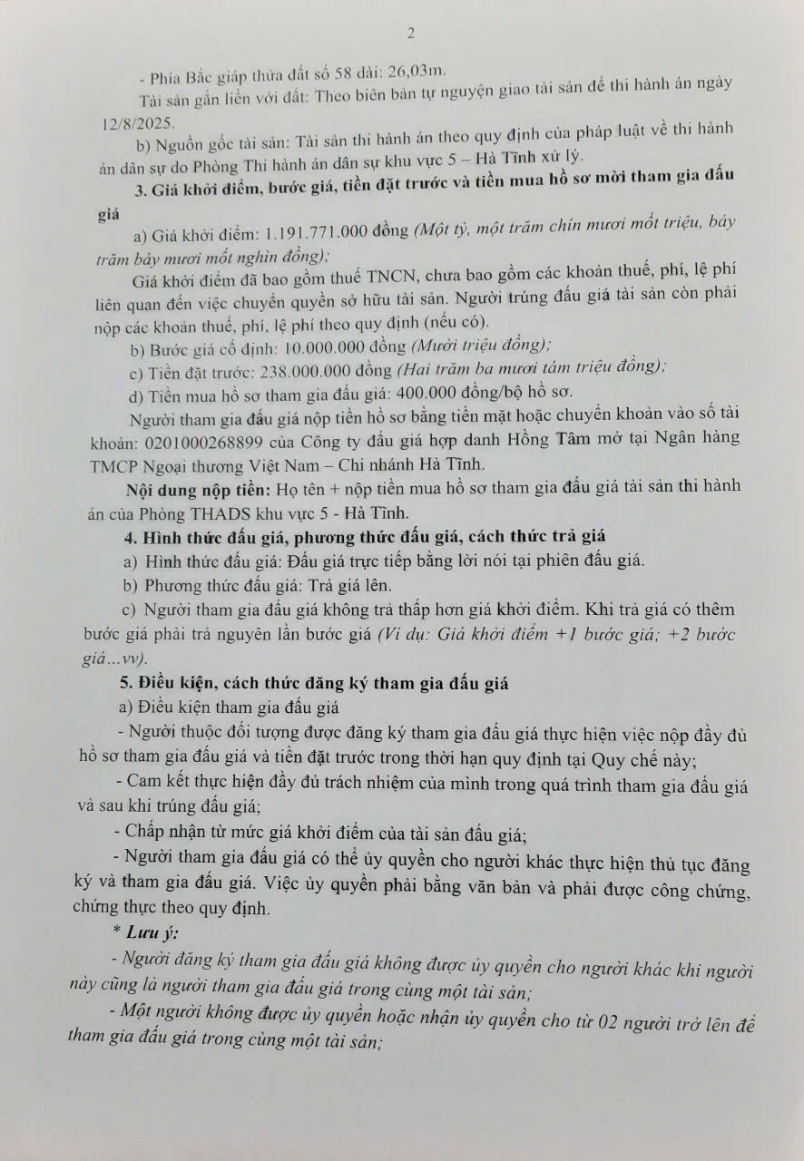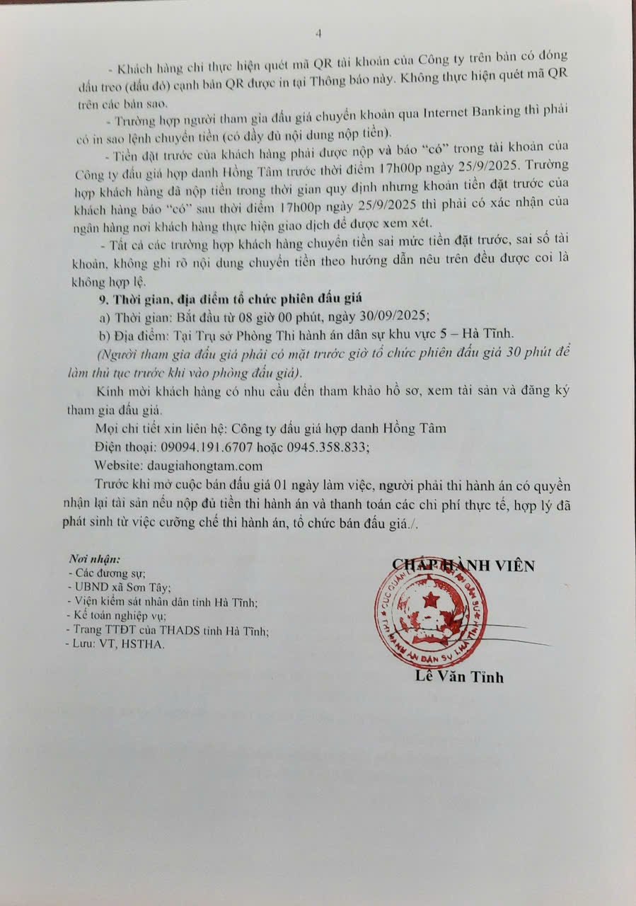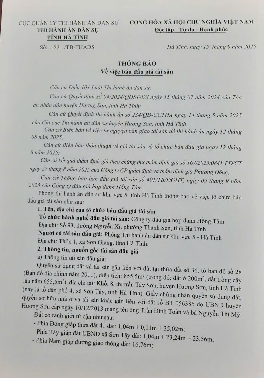 THADS KHU VỰC 5 - TB V/V BÁN ĐẤU GIÁ TS
