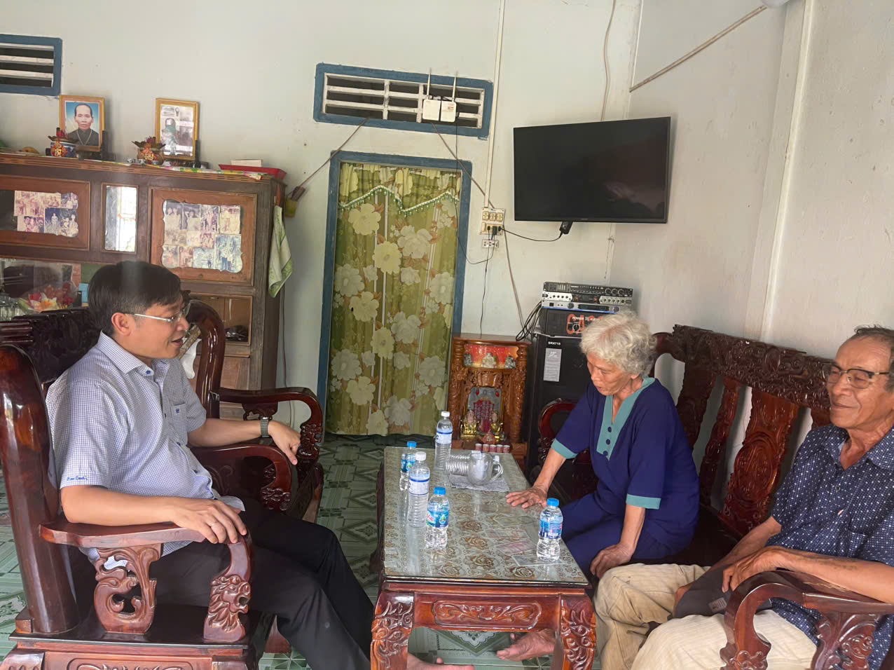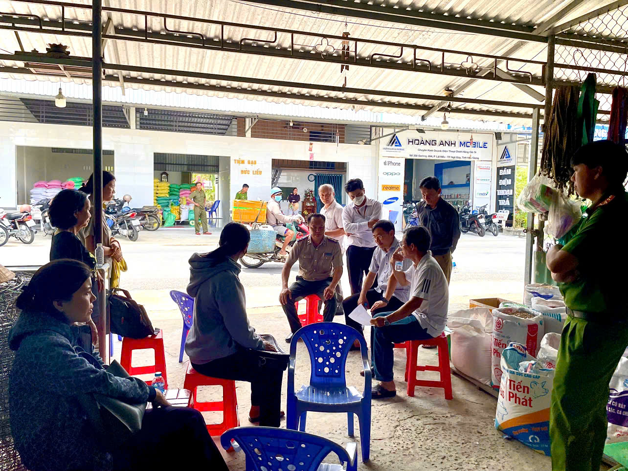 Đ/c Lê Hoàng Xuyên - Chủ tịch UBND,Trưởng ban BCĐ THADS TP. Ngã Bảy, Đ/c Trần Nghĩa Hiệp - Chi cục trưởng và các thành viên Ban chỉ đạo đang trao đổi, vận động ông Cuông, bà Điệp, ông Khởi
