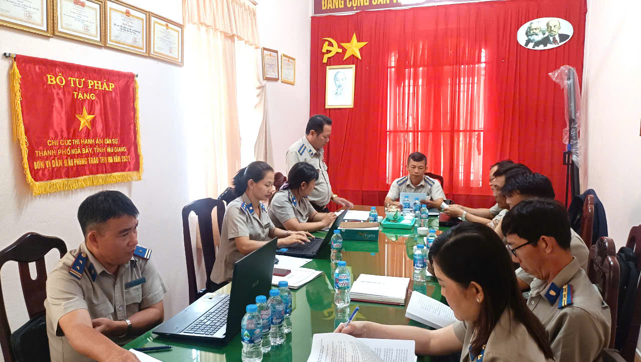 Sáng ngày 24 tháng 02 năm 2025, tại trụ sở Chi cục THADS thành phố Ngã Bảy, tỉnh Hậu Giang, đồng chí Lê Văn Nam - Phó Cục trưởng Cục THADS tỉnh, Trưởng đoàn kiểm tra công bố quyết định kiểm tra toàn diện đối với Chi cục THADS thành phố Ngã Bảy và tiến hành kiểm tra theo kế hoạch. Theo đó nội dung kiểm tra gồm 07 vấn đề: Công tác quản lý, chỉ đạo, điều hành; công tác tổ chức cán bộ; công tác tổ chức thi hành án; công tác văn phòng; công tác dân vận chính quyền, việc thực hiện Quy chế dân chủ ở cơ sở; công tác tiếp dân, giải quyết khiếu nại, tố cáo; công tác kiểm tra, tự kiểm tra.