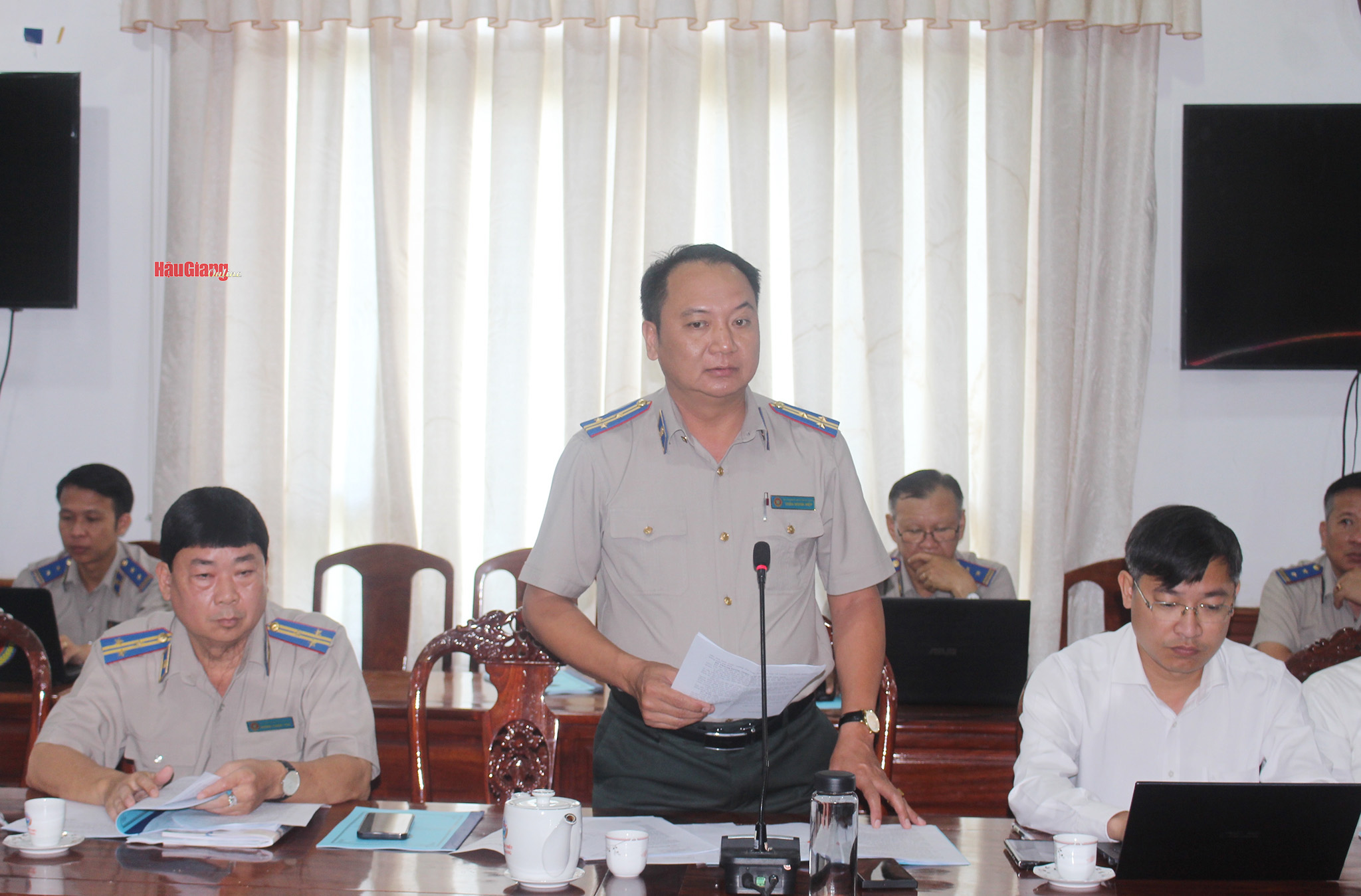 Lãnh đạo Chi cục THADS thành phố Ngã Bảy báo cáo kết quả thi hành án