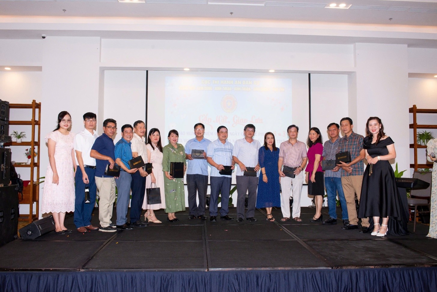 Đại diện các Lãnh đạo của các cơ quan Thi hành án dân sự lên tặng hoa và quà cho chị em phụ nữ của các đơn vị nhân dịp kỷ niệm 115 năm ngày Quốc tế phụ nữ 8/3 và 1985 năm Khởi nghĩa Hai Bà Trưng.